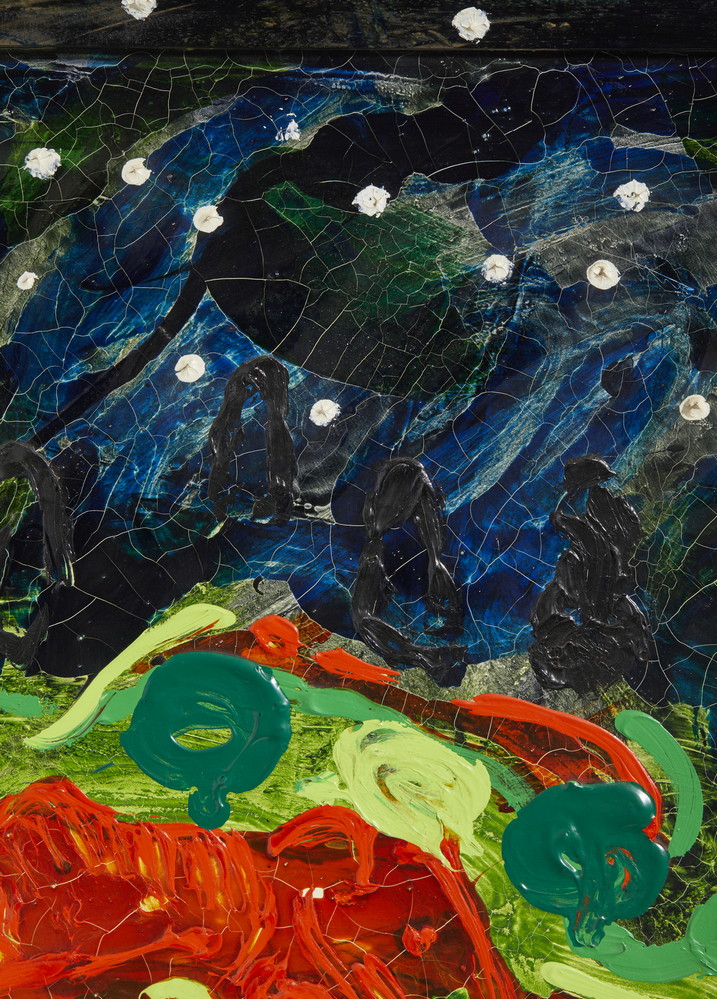 SCHIFANO MARIO (1934 - 1998) SENZA TITOLO. 1986. smalto e acrilico su tela, cornice dipinta. Cm 60,00 x 60,00. sul retro: firma e data