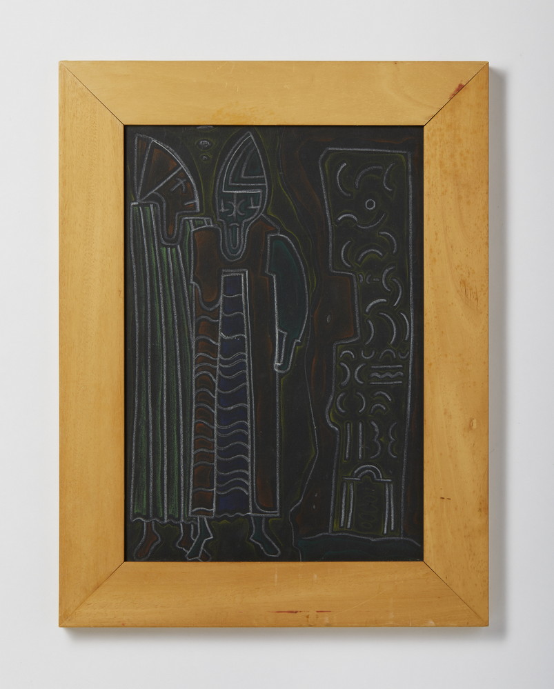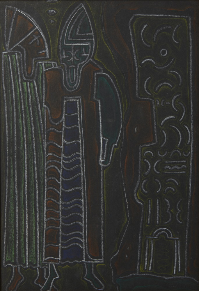 MAROTTA GINO (1935 - 2012) STORIA NOTTURNA DI ANAGNI. 1955. pastello su cartoncino applicato su tavola. Cm 33,00 x 47,50. sul retro: firma, data e titolo. Cornice presente