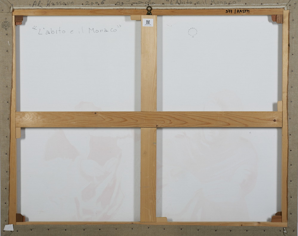 HASSOUN ALI (n. 1964) L'ABITO E IL MONACO. 2006. olio su tela. Cm 150,00 x 120,50. sul retro: firma, data, titolo, timbro