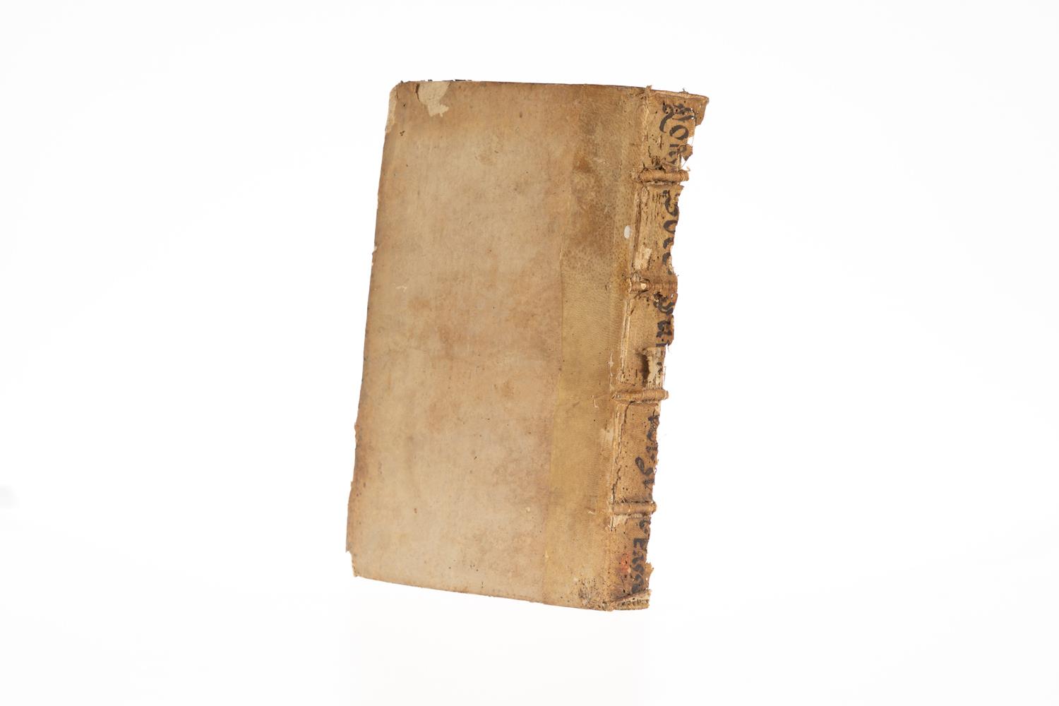 Volume in-folio, rilegato in pergamena coeva, titolo calligrafato al dorso, carte 156, [15], esemplare in discrete condizioni, piatto posteriore mancante, dorso parzialmente mancante, bruniture.
