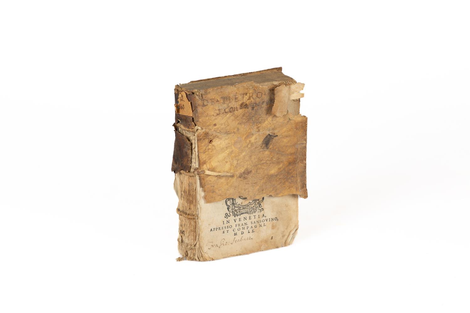 Esemplare in discrete condizioni, fori di tarlo e gore marginali, legatura parzialmente mancante.