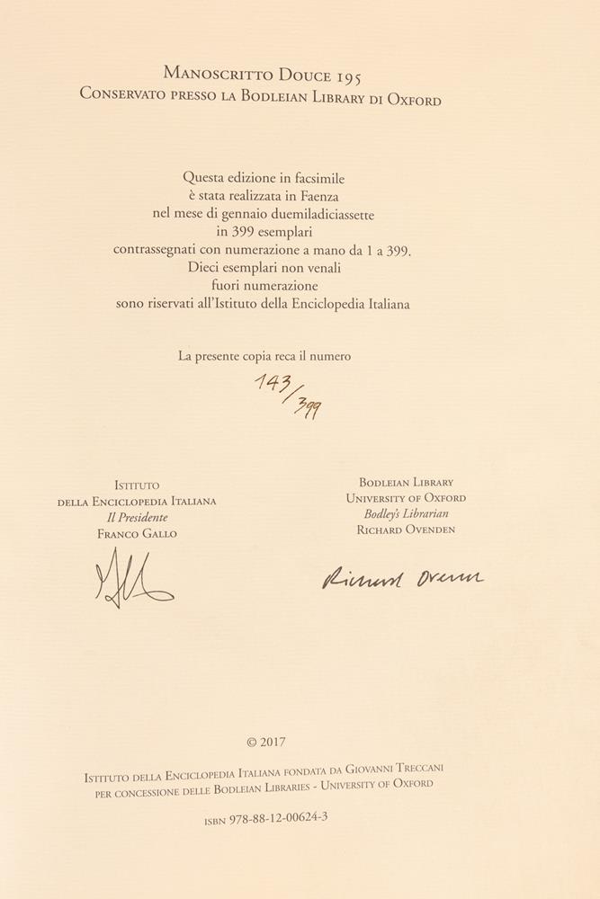 Commentario, rilegato in carta pergamenata, con saggi di Roberta Manetti, Nathalie Coilly e Martin Kauffmann.