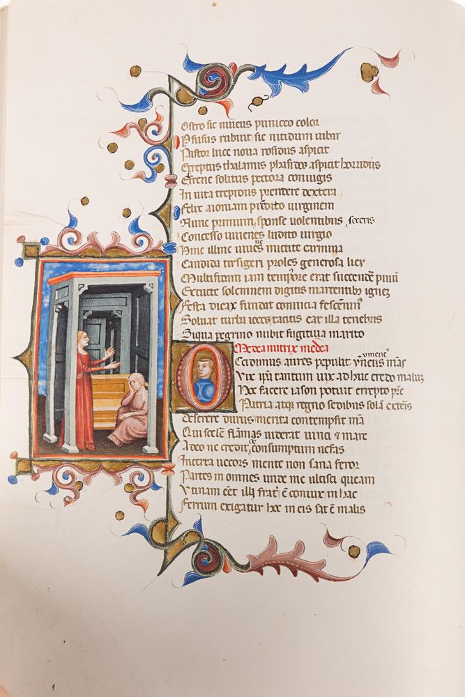 Riproduzione in facsimile del manoscritto, XIV secolo, che contiene ‘Il Teatro’ (le Tragedie) di Seneca.