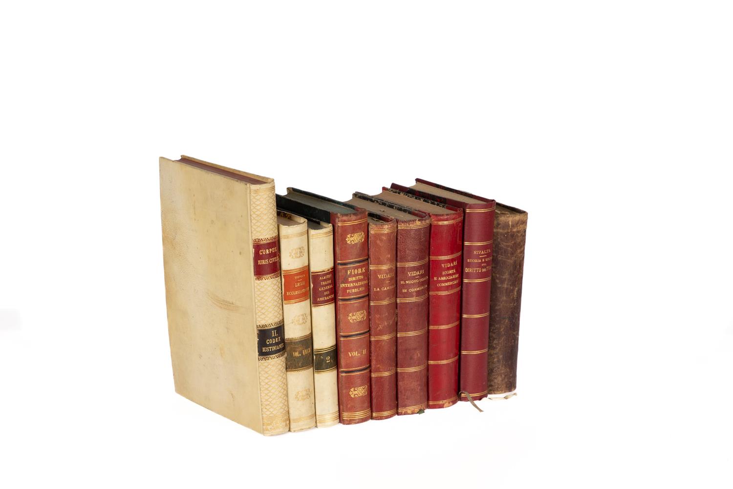 Nove volumi formato 4°/8° rilegati in mezza pergamena/ mezza pelle, di argomento giuridico, comprende: