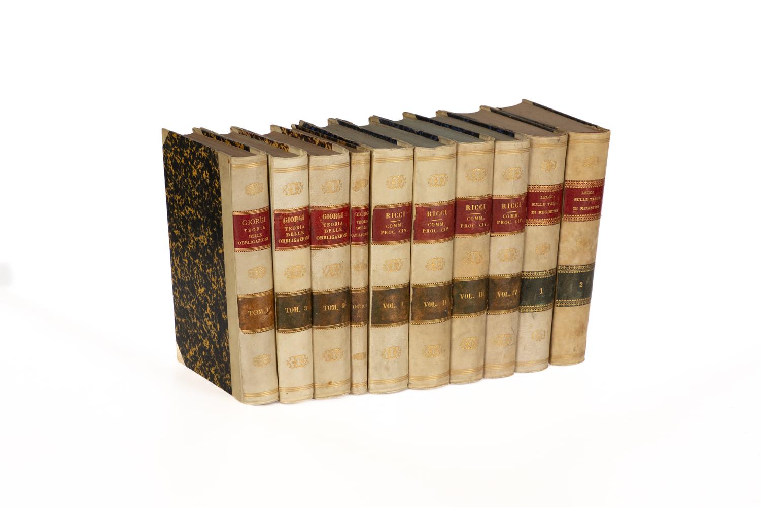 Lotto di dieci volumi formato 8° rilegati in mezza pergamena, di argomento giuridico, comprende: