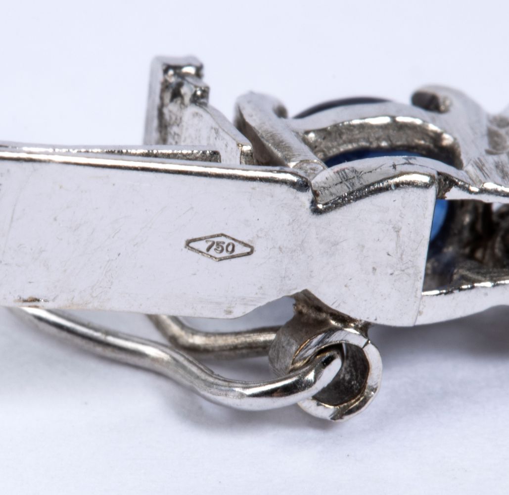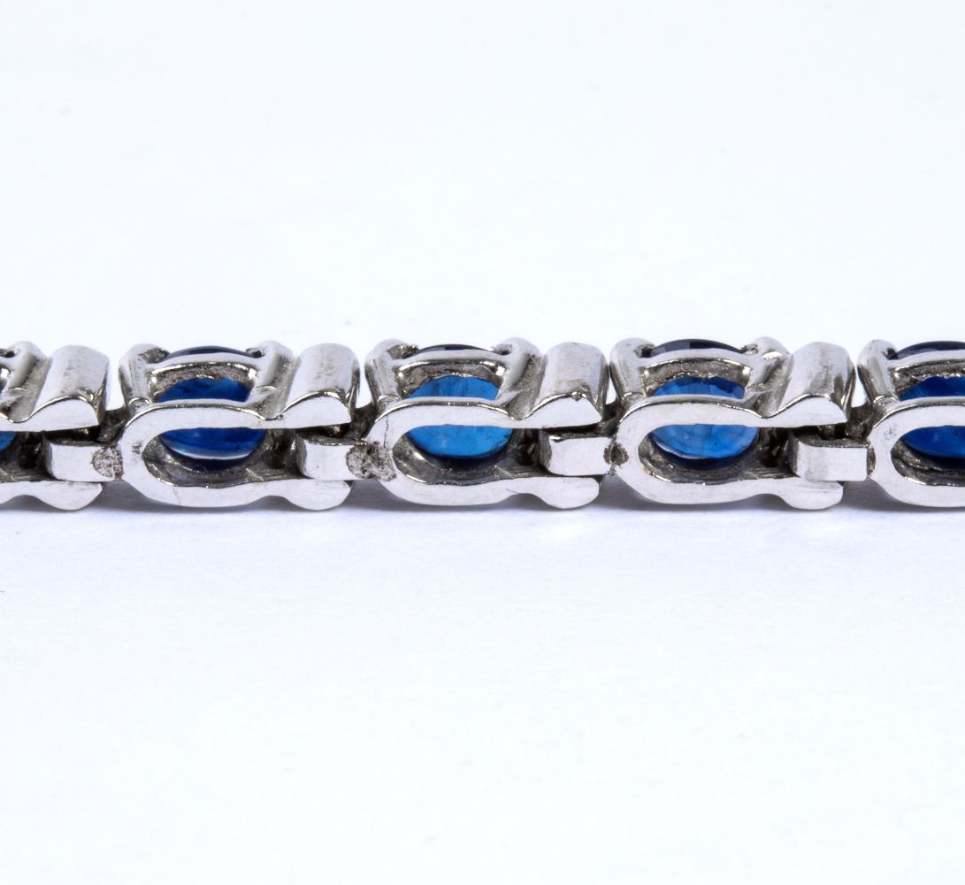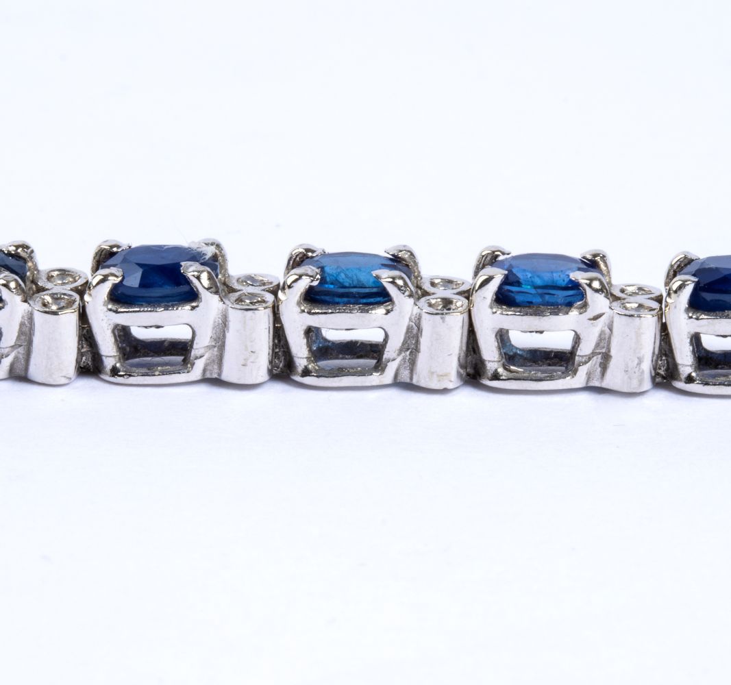 in oro bianco 18k, incastonato con linea di zaffiri ovali separati da coppie di diamanti rotondi taglio brillante.