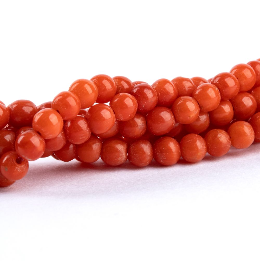Diametro sfere di corallo: 3.5 - 4 mm. Lunghezza girocollo: 43,5 cm Peso: 49,1 gr.