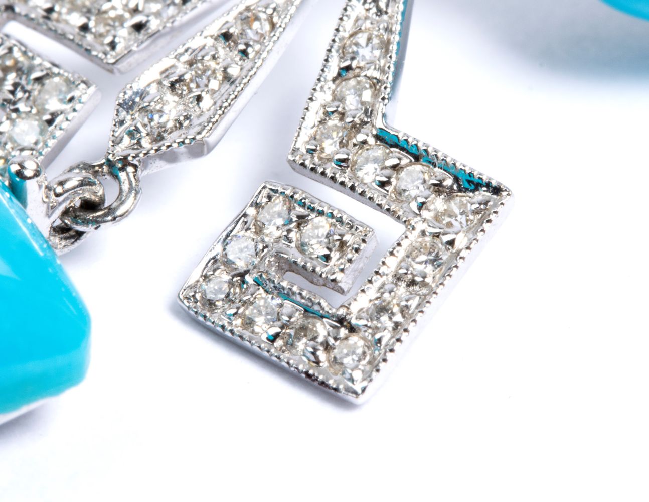 Paio di orecchini pendenti in oro con turchese e diamanti