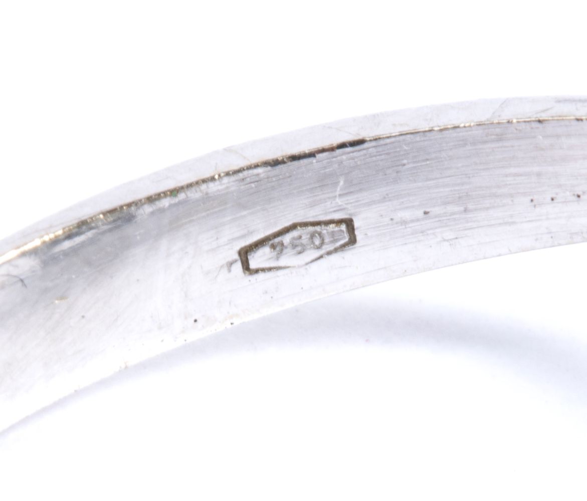 in oro bianco 18k, incastonato con smeraldo ottagonale incorniciato da diamanti taglio brillante.