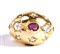incastonato con rubino centrale di forma ovale contornato da diamanti taglio a rosa e taglio old mine.
