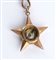 catena a maglia tessita in oro 18k, con pendente a bussola stellata in oro a basso titolo, ed un saliscendi centrale a motivo floreale con nappe pendenti laterali.