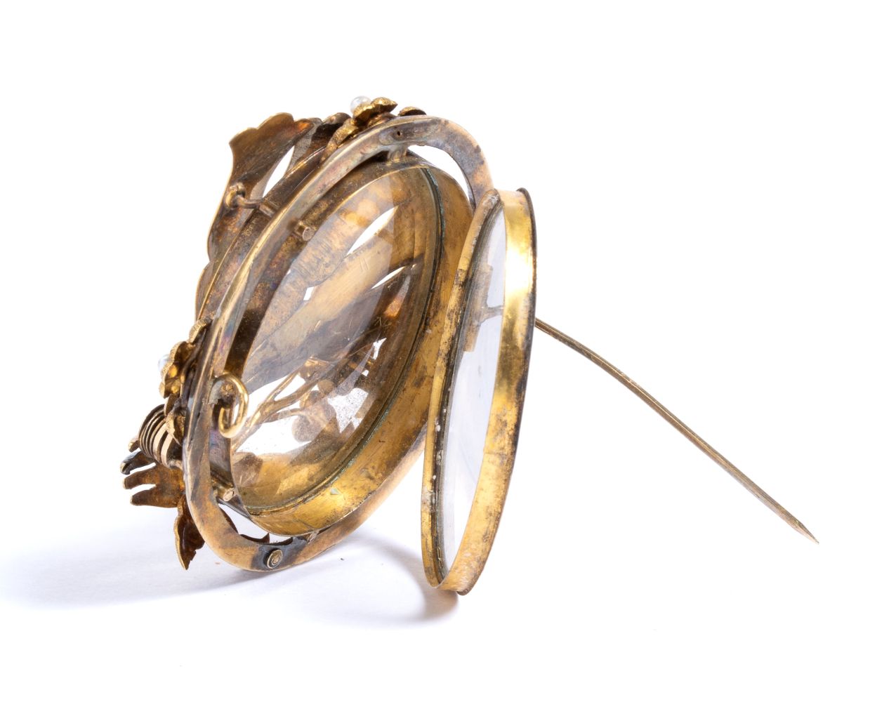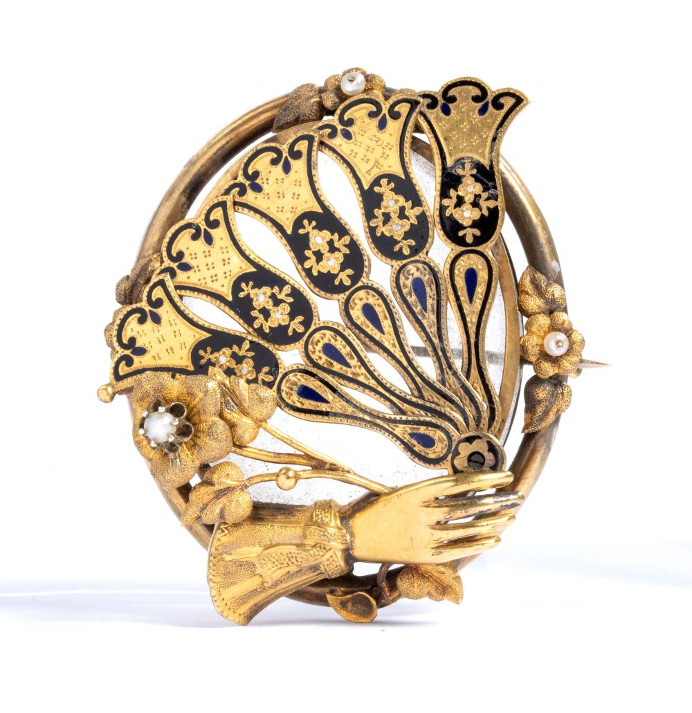 Spilla porta ritratto in oro e smalto fine XIX secolo