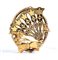 rara spilla vittoriana in oro antico, finemente decorata con paste vitree azzurre, presenta sul fronte un motivo di ventaglio aperto, con motivi floreali, al verso un motivo di ventaglio chiuso.