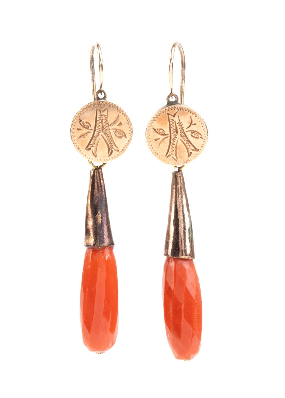 ciascuno con goccia di corallo Mediterraneo (corallium rubrum).