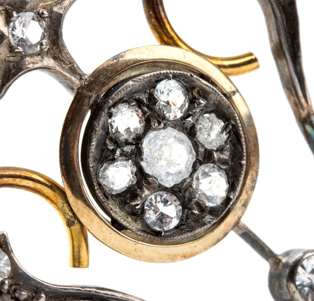 Spilla-pendente in argento, oro e paste vitree fine XIX secolo