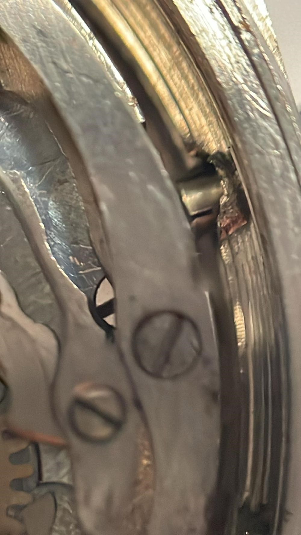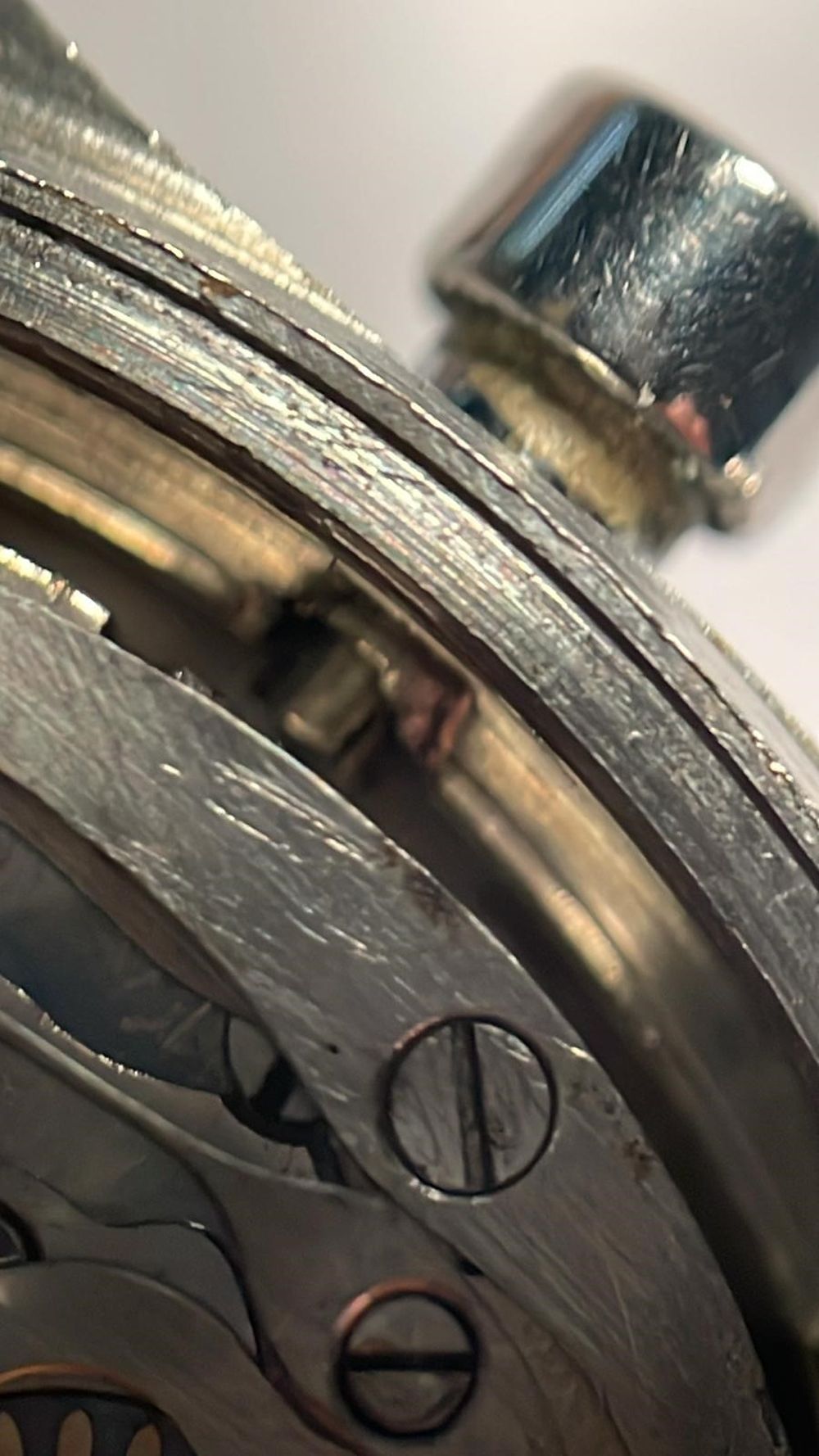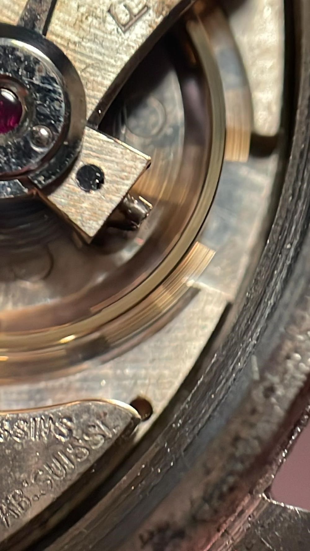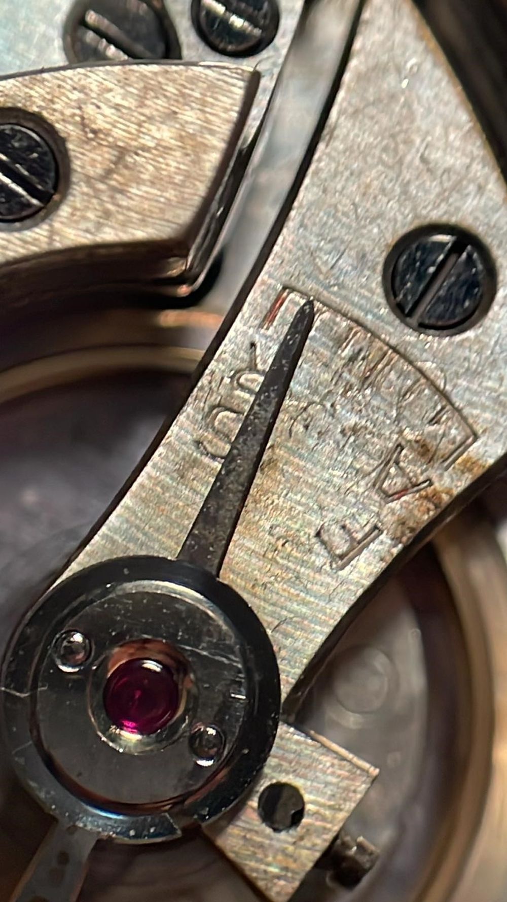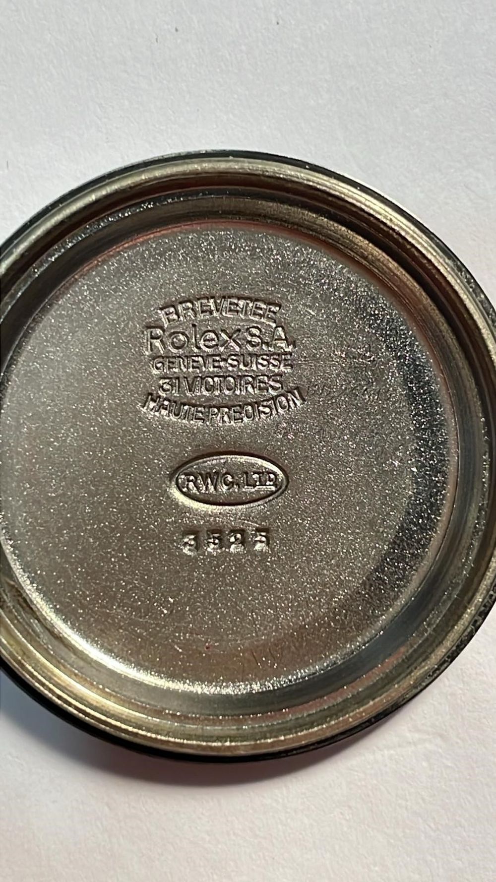 Numero seriale 386894 inciso tra le anse alle ore 6. Referenza all'interno del fondello.