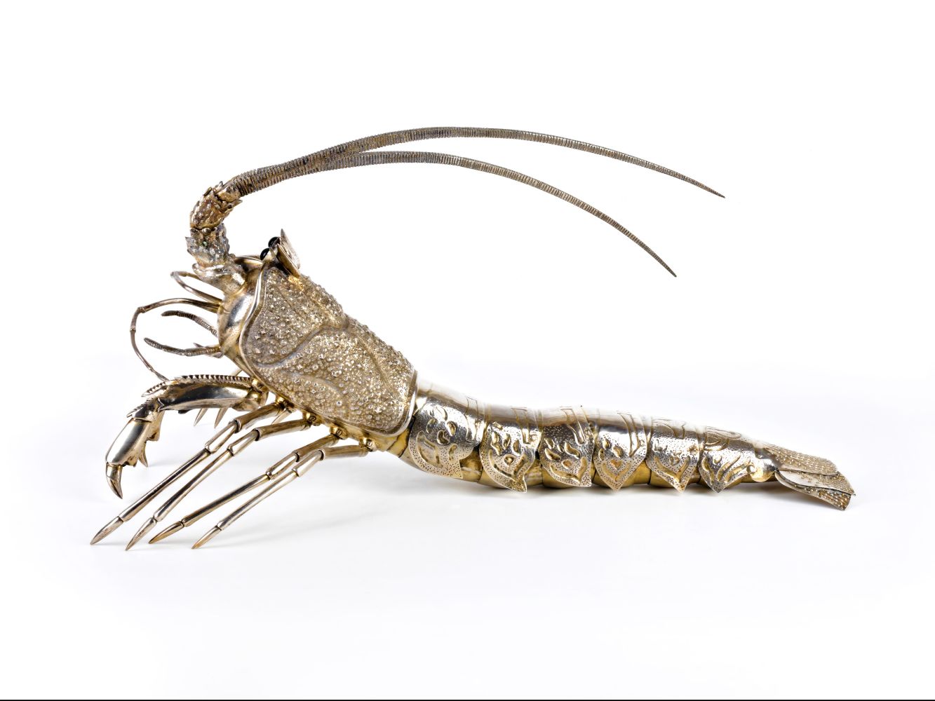 riccamente lavorata con addome interamente snodabile, antenne, chele e subchele mobili. Occhi in onice. Argentiere Luiz Ferreira.