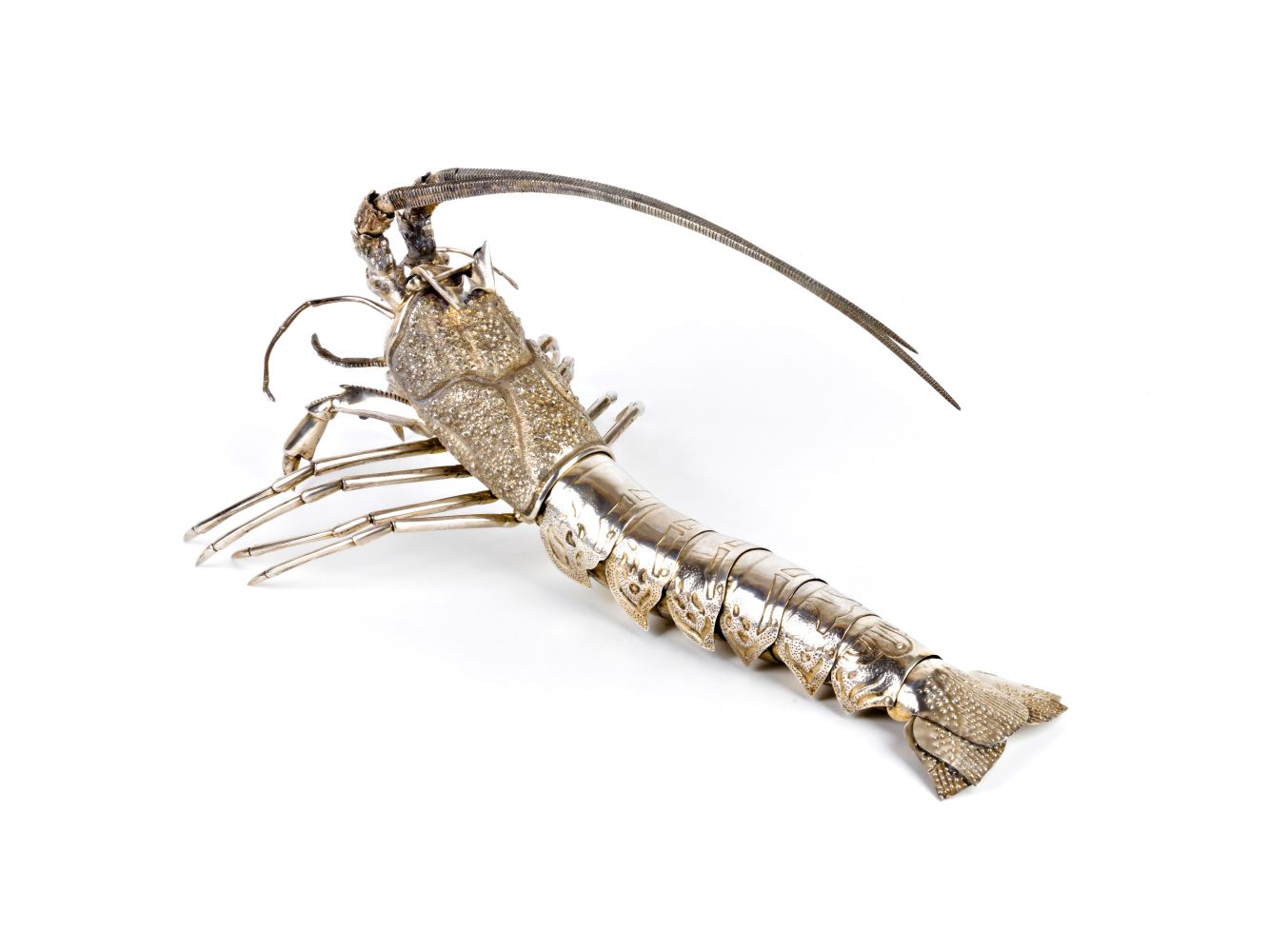 LUIZ FERREIRA (1909 - 1994) Aragosta portoghese in argento XX secolo Altezza x larghezza x lunghezza: 18 x 42 x 27 cm. Peso: 1440 gr circa.