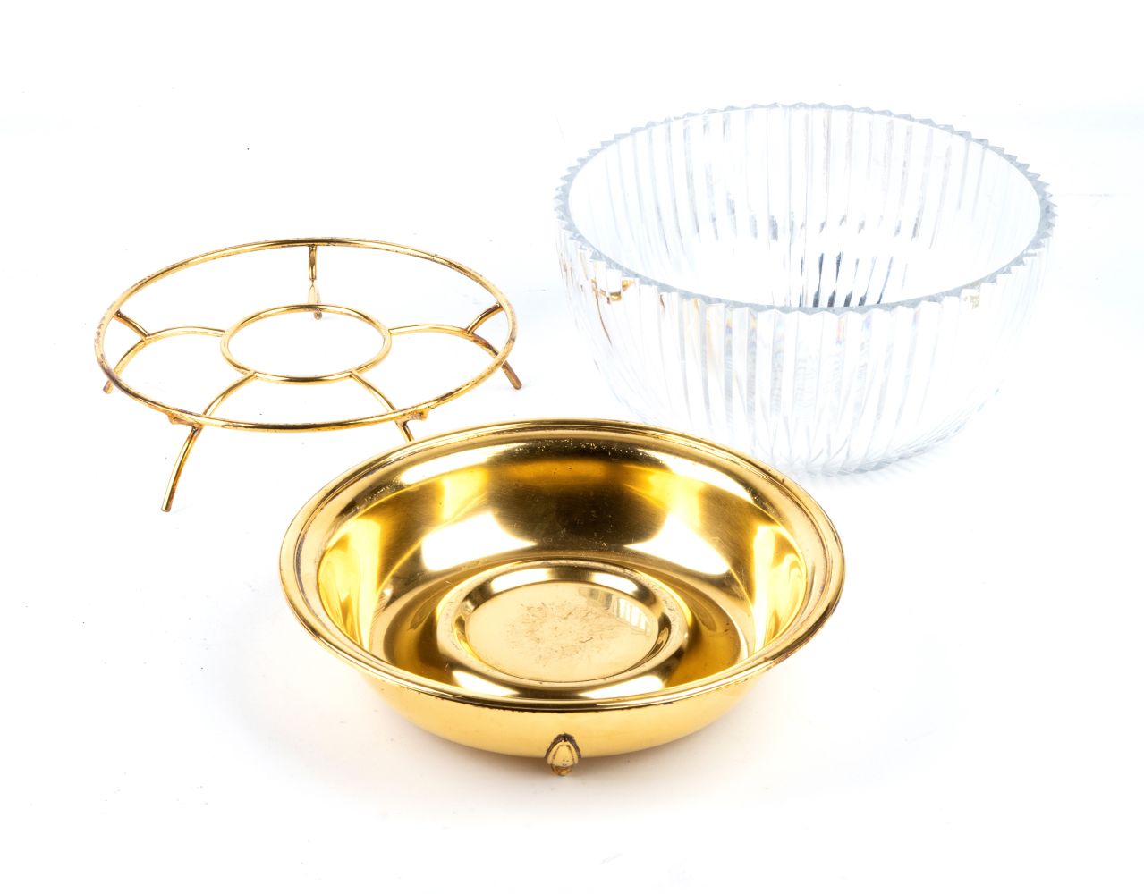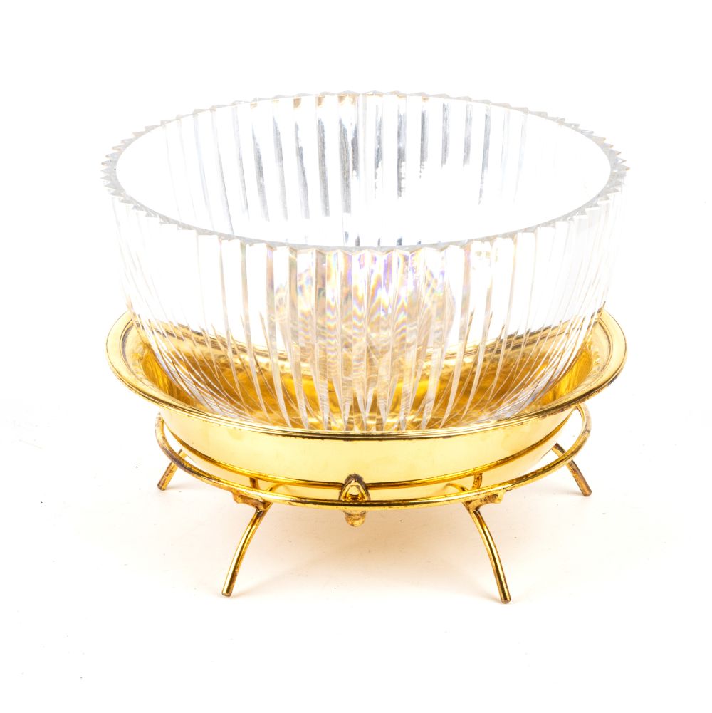 Insalatiera italiana in argento dorato e vetro XX secolo, Italia Altezza x larghezza x lunghezza: 15,5 x 22 x 22 cm. Peso lordo complessivo: 2275 gr circa.
