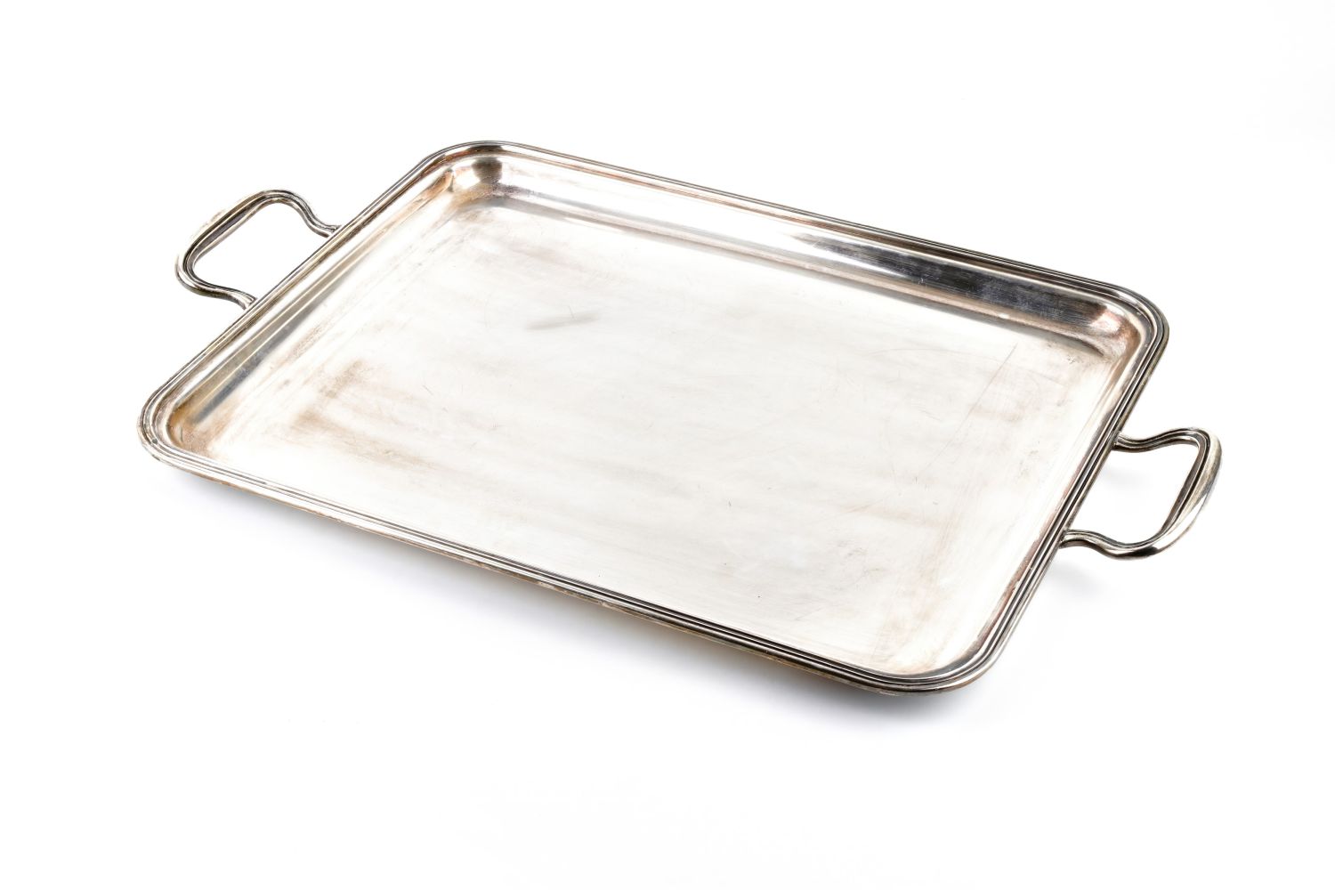 Lot 223 | Vassoio italiano in argento XX secolo Altezza x larghezza x profondità: 1 x 43 x 33 cm. Peso: 1554 gr
