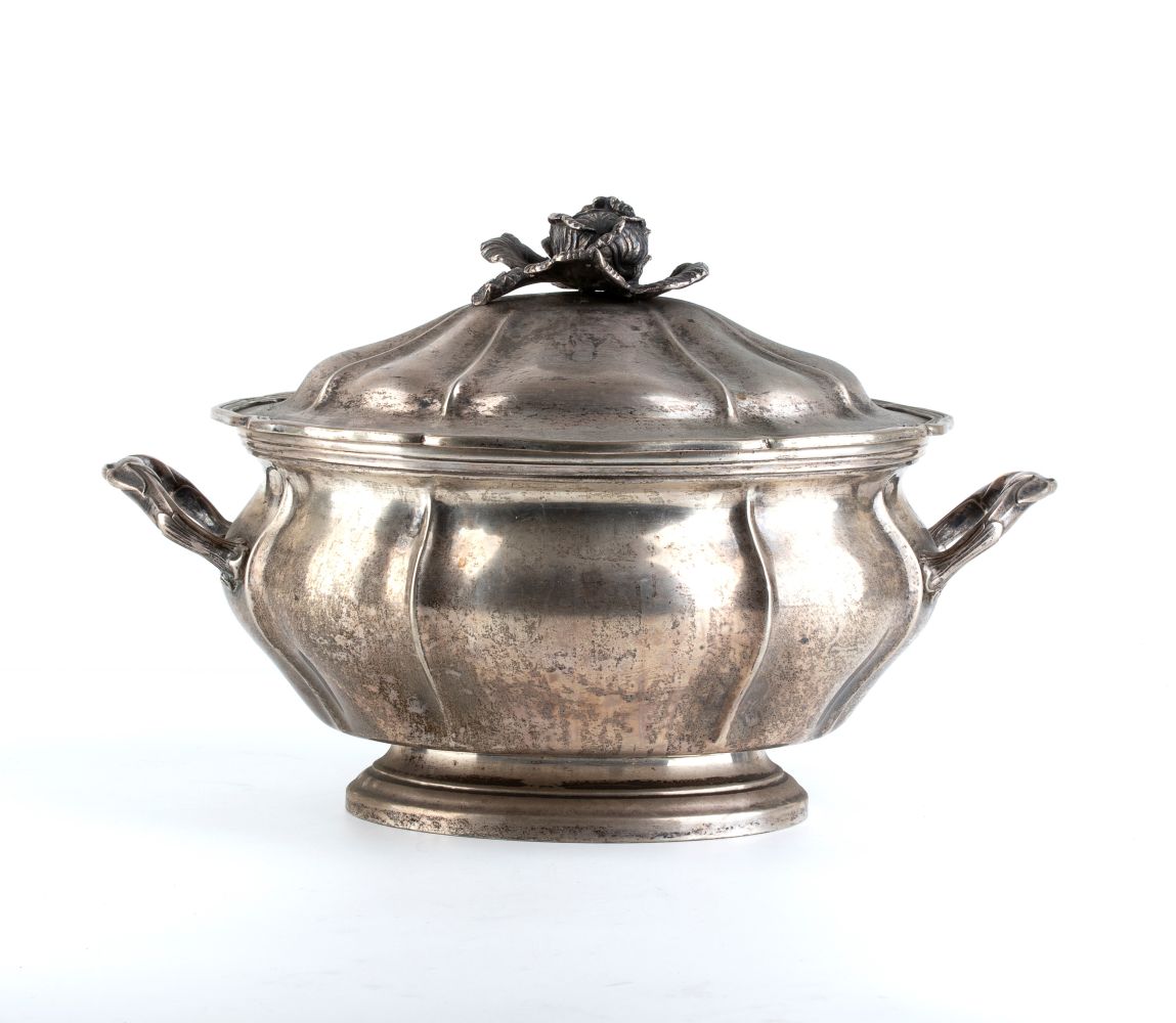 Lot 227 | Zuppiera italiana in argento Inizio XX secolo Altezza x larghezza x lunghezza: 23 x 27 x 23 cm. Peso: 2260 gr.