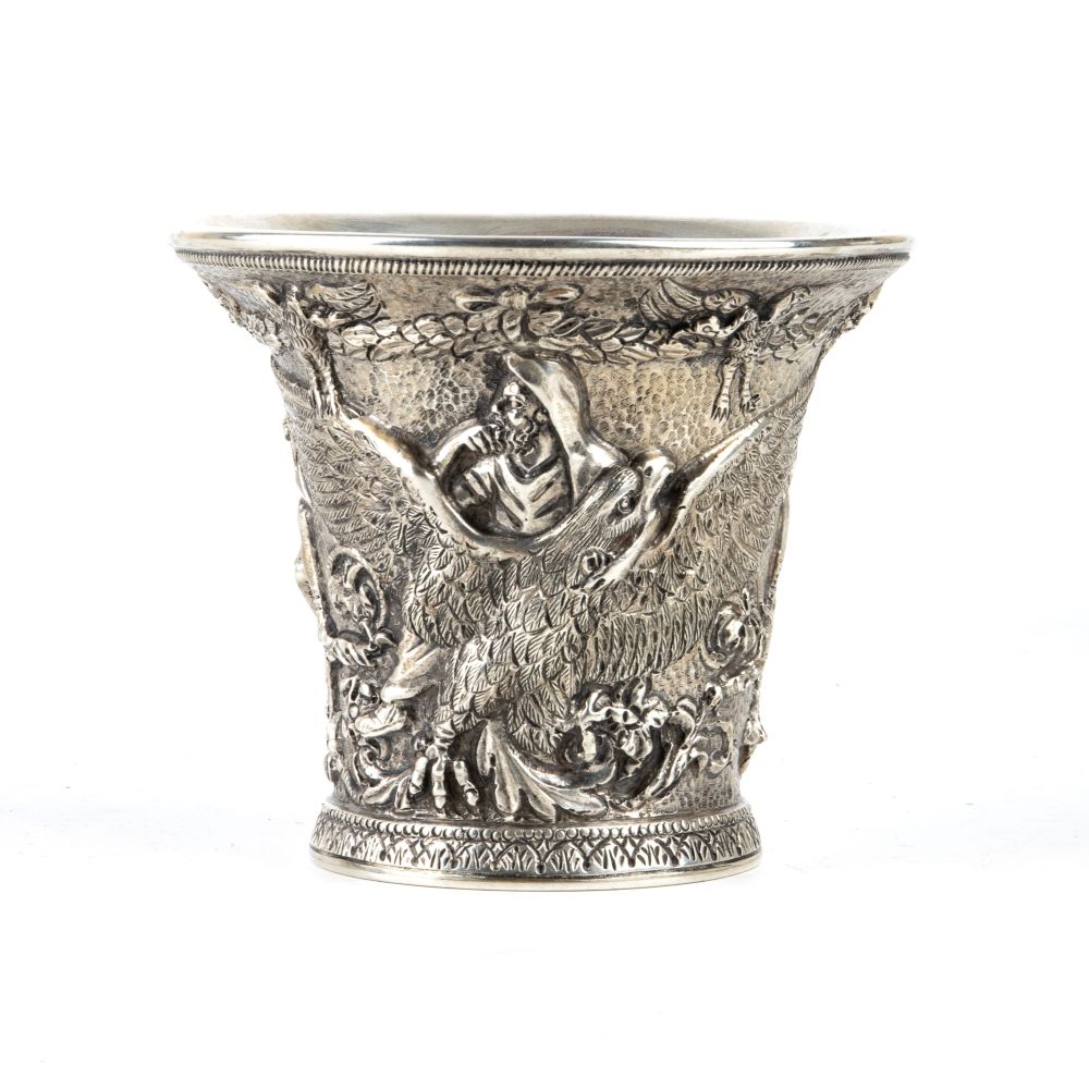 Lot 231 | Vaso italiano in argento Napoli, XX secolo Altezza x larghezza x profondità: 11,5 x 13 x 13 cm. Peso: 1095 gr.