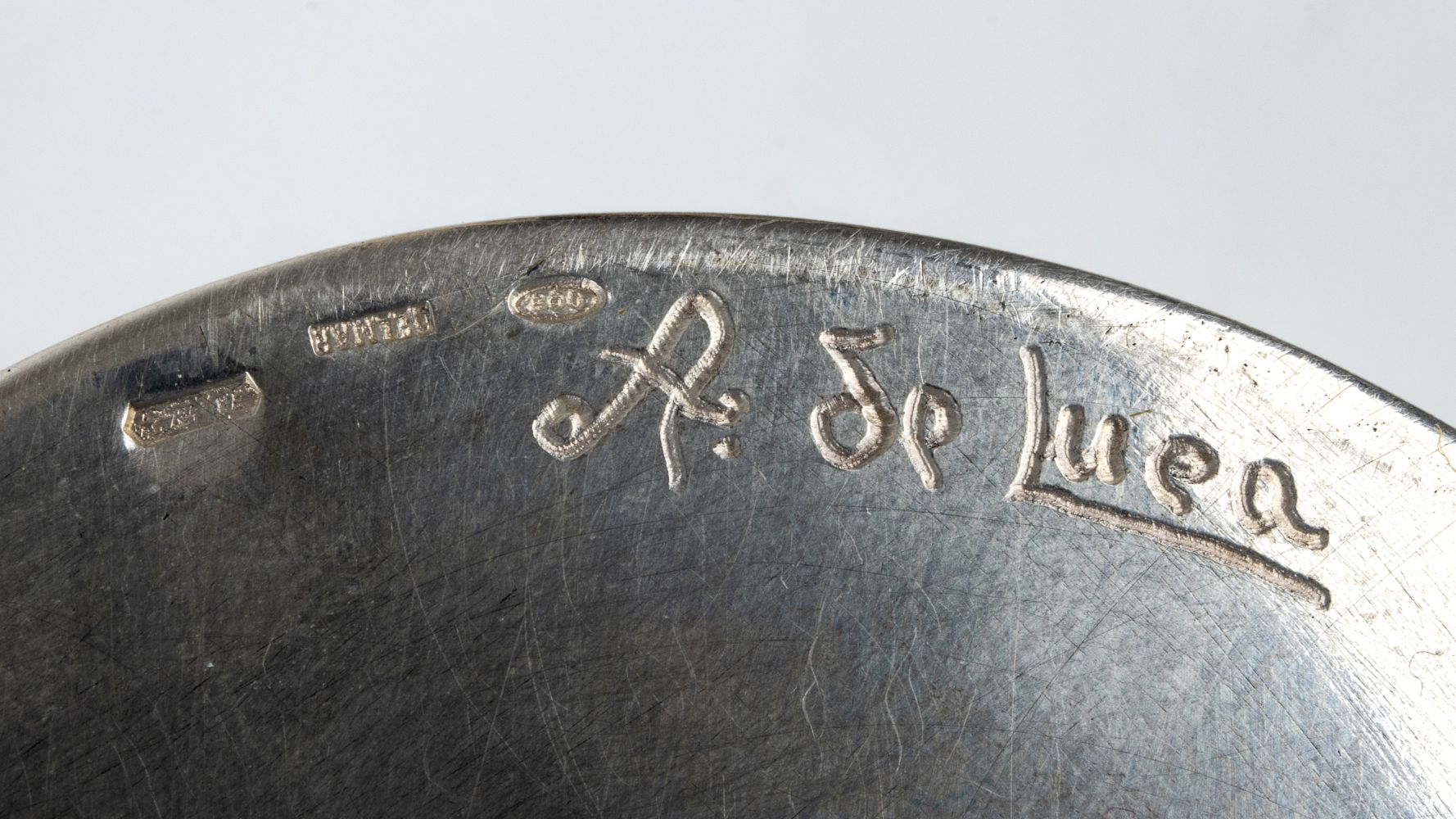 Argento 800/1000, punzonato "800 - A. De Luca - NA - OLMAR", argentiere Angelo De Luca.