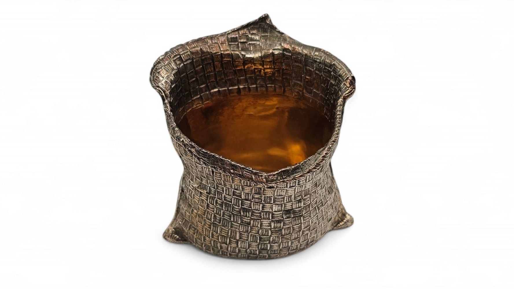 3) dimensioni cestino: 7,7 x 7,4 x 7,5 cm. Argento 800/1000, punzonato "800 - FASANO - 28 MI".