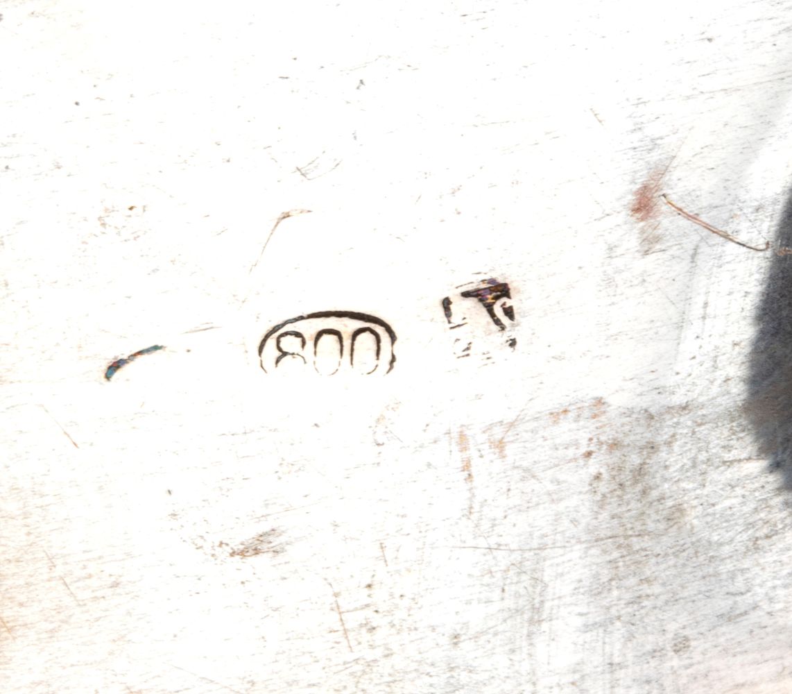 Argento 800/1000, punzonata "800", altri marchi non identificabili.Punzonata "800", altri marchi non identificabili.