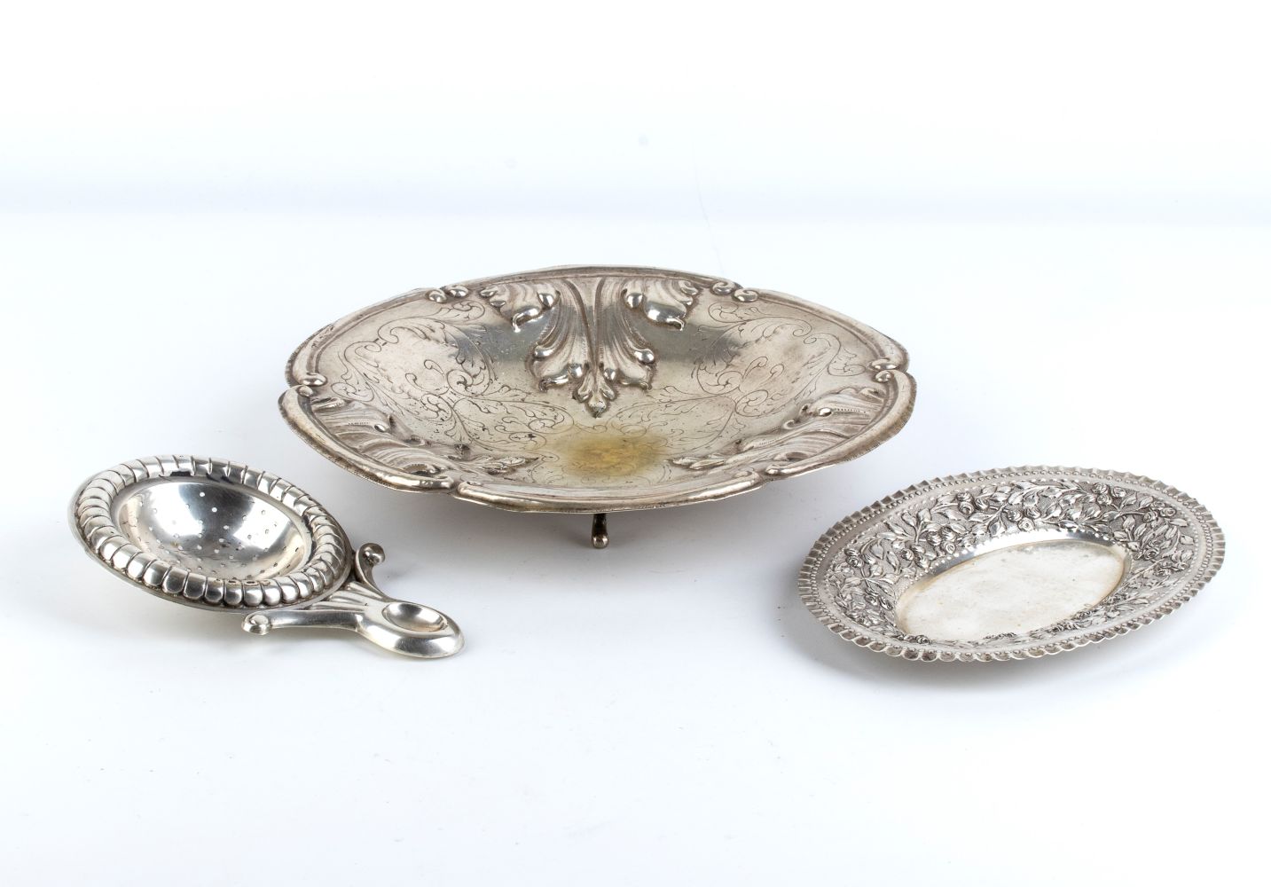 3) vassoio rotondo: 21,5 x 21,5 cm. Argento 800/1000, punzonato "800".