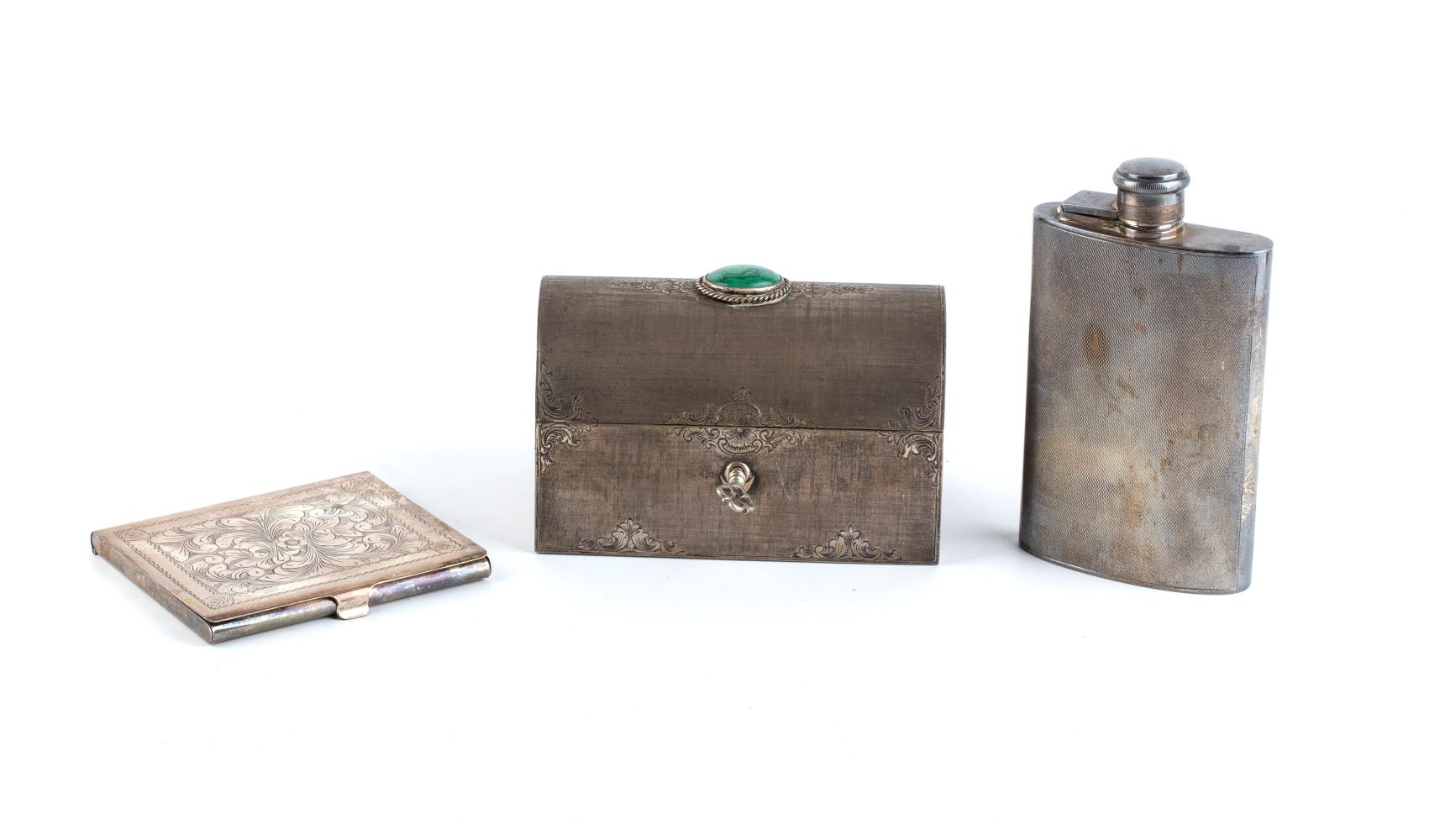 Lotto di 3 oggetti italiani in argento XX secolo Peso lordo complessivo: 670 gr circa.