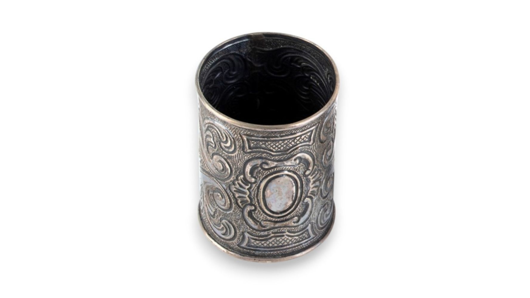 Boccale italiano in argento Altezza x larghezza x profondità: 9 x 7 x 7 cm. Peso: 88 gr circa.