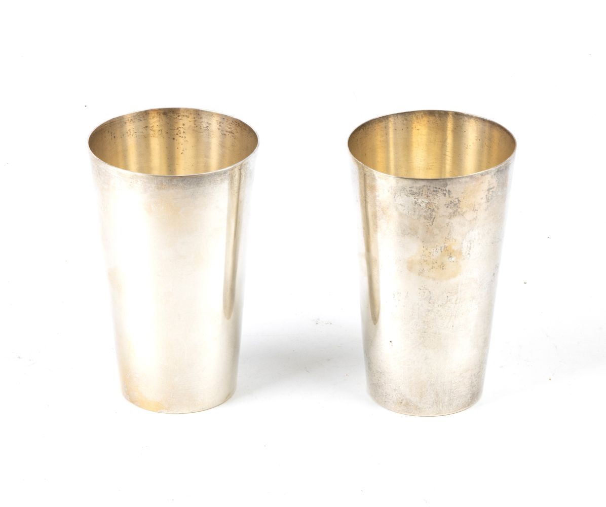Lot 268 | Stieff company Coppia di bicchieri americani in argento Metà XX secolo Altezza x larghezza x profondità: 12,5 x 8 x 8 cm. Peso complessivo: 350 gr.