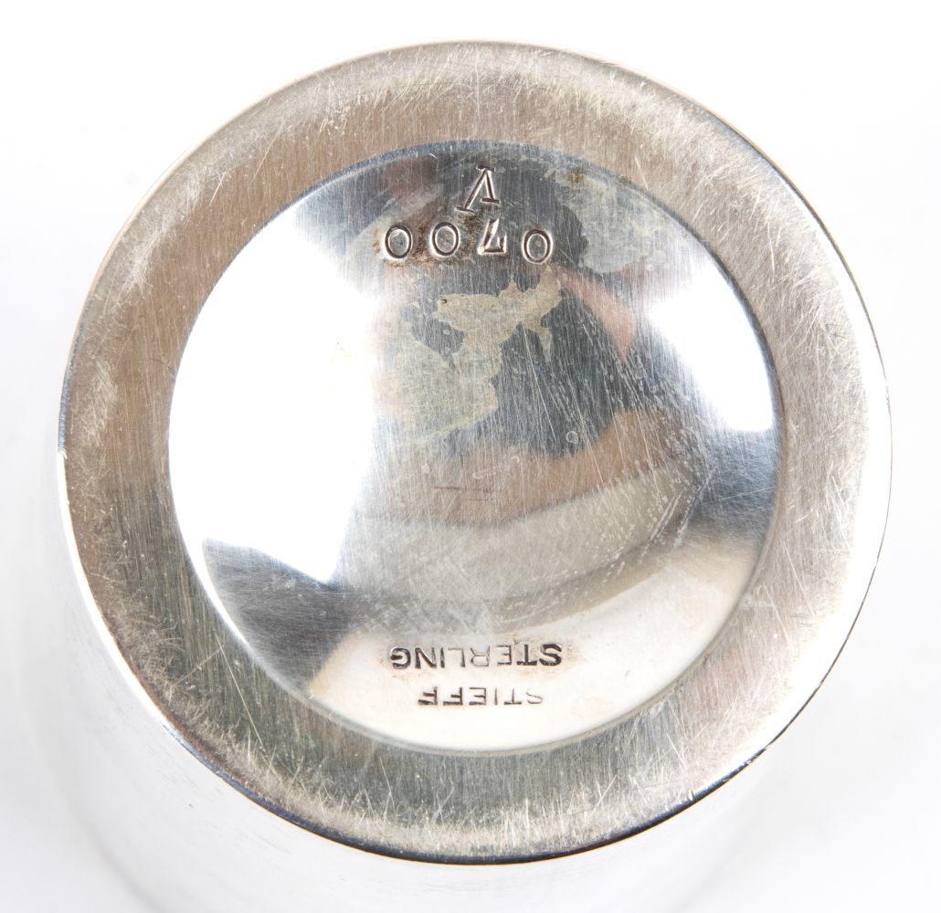 Stieff company Coppia di bicchieri americani in argento Metà XX secolo Altezza x larghezza x profondità: 12,5 x 8 x 8 cm. Peso complessivo: 350 gr.