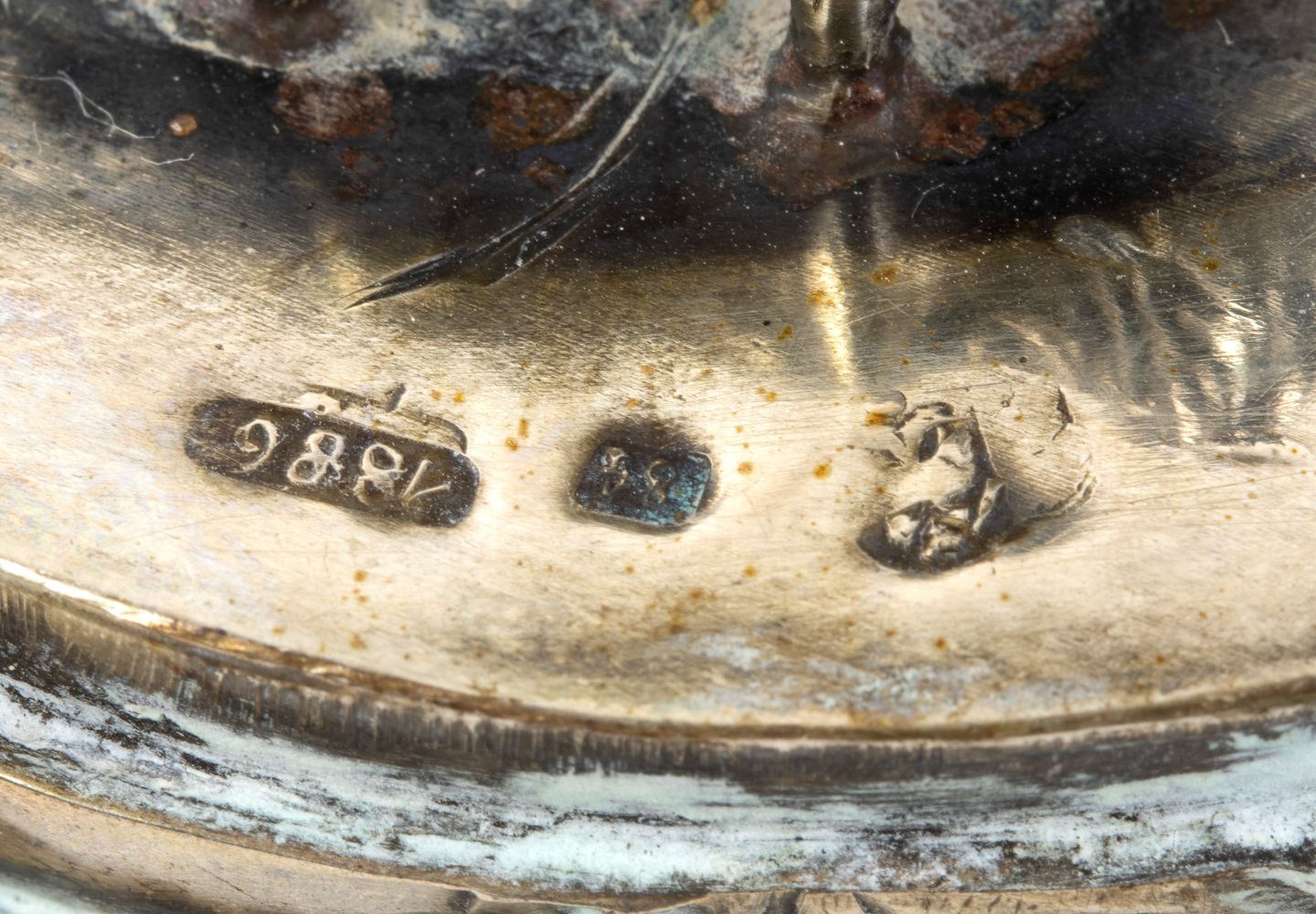 Punzonato con marchi apocrifi Russi del XIX secolo per l'argento al titolo di 84 zolotnik (875/1000).