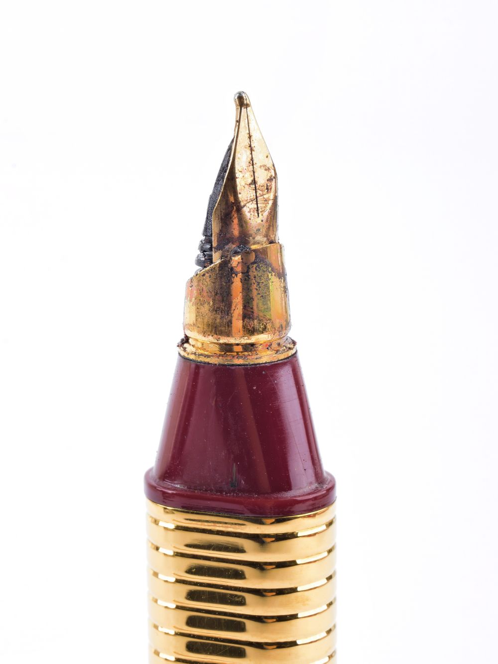 corpo e cappuccio placcati in oro; premendo la parte superiore del cappuccio la clip si apre alla larghezza desiderata, rilasciando la pressione la clip ritorna nella sua posizione originale. Numero di serie 123596.