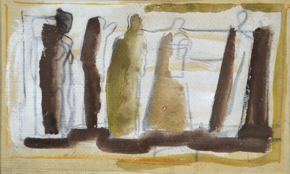 SIRONI MARIO Sassari 1885 - Milano 1961 Composizione di figure 1936 tecnica mista su carta intelata 13x21,4 Esposizioni: Galleria Cadario Milano - etichetta al retro e timbro nr. Arch. 2889