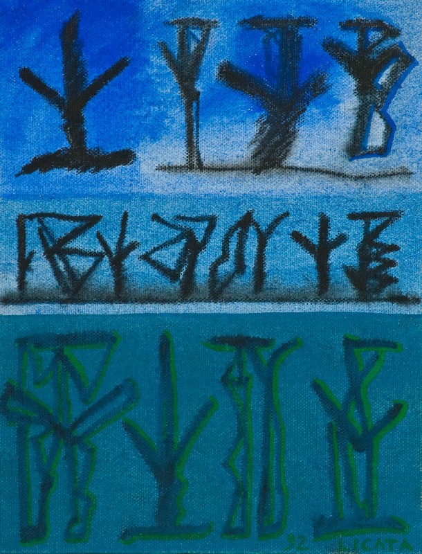 Riccardo Licata (Torino 1929) COMPOSIZIONE N° 23, 1992 Olio su tela, cm. 35x27 Firma e data in basso a destra. Sul verso: firma e dedica a persona; Etichetta "Galleria San Carlo", Milano, con descrizione.