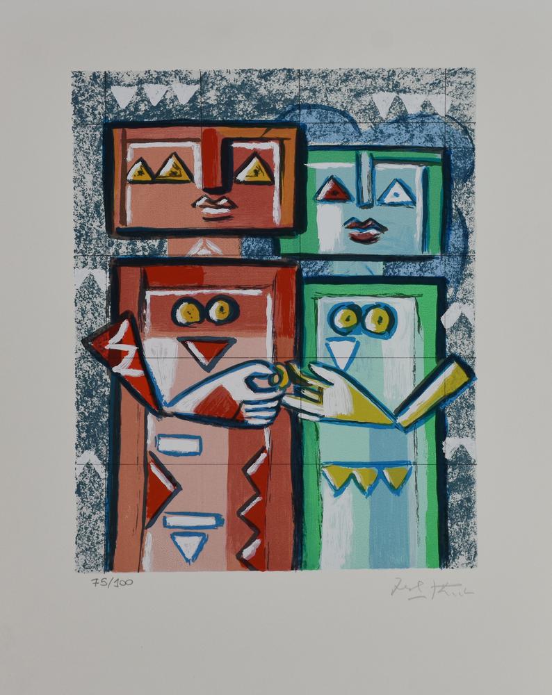 Ibrahim Kodra LE DIEDI L'ANELLO serigrafia, cm 50x35; es. 75/100 firma e...