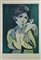 Remo Brindisi FIGURA CON COLOMBA stampa su carta, cm 70x50; es. p.a. firma e...