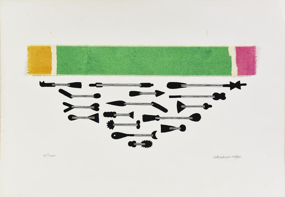 litografia con collage, cm 34,5x49,5; es. 177/400