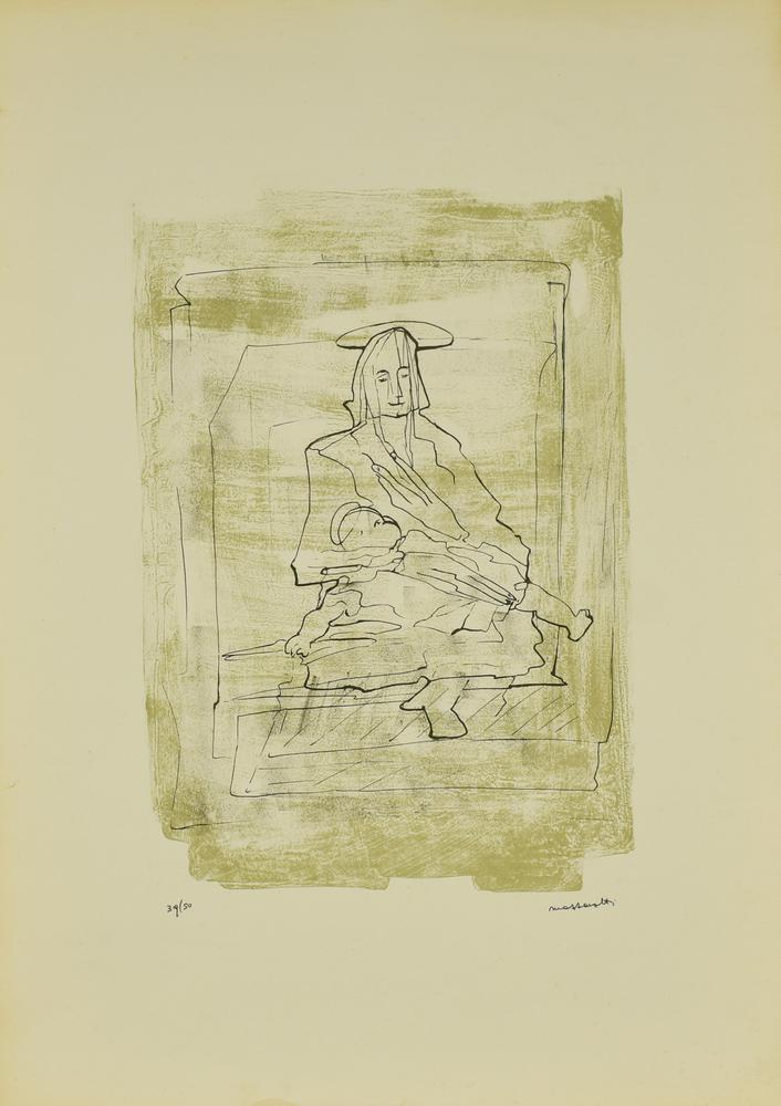 Nelia Massarotti SANTO CON BAMBINO litografia, cm 70x50; es. 39/50 firma e...