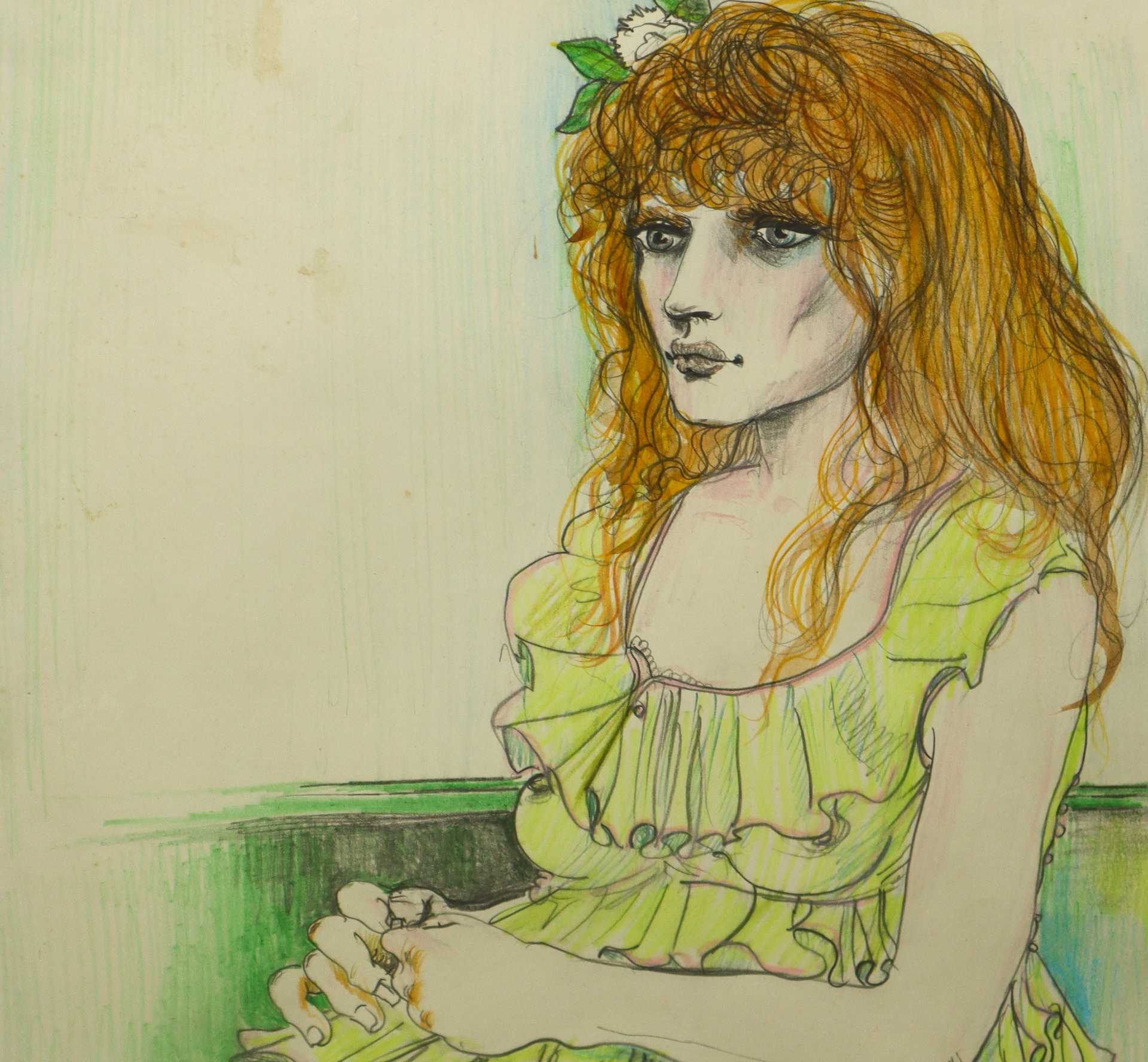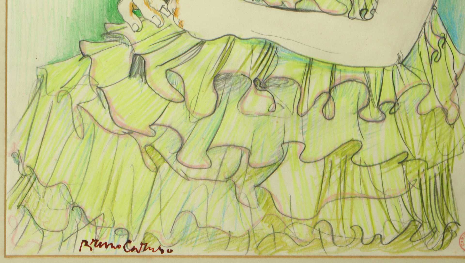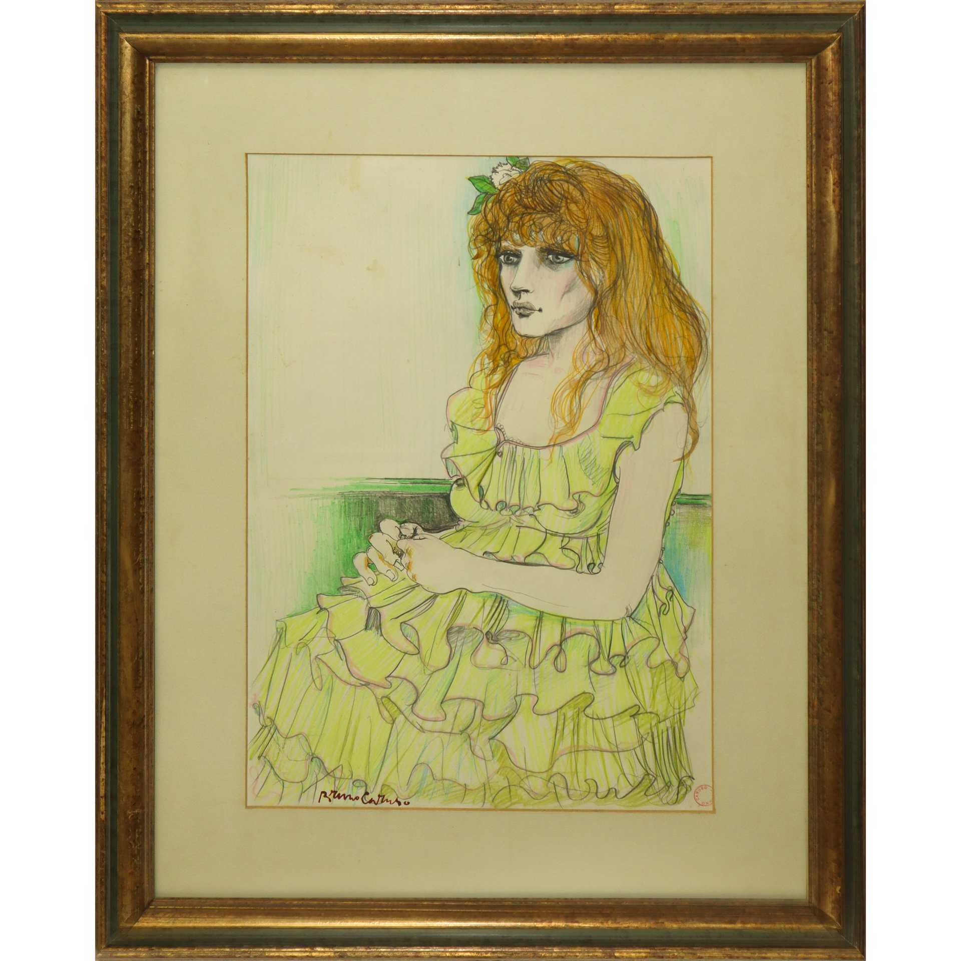 Bruno Caruso (Palermo 1927-Roma 2018) - Ragazza, 1980s H cm 48x33 - in cornice H cm 70x54,5 tecnica mista su carta Firmato al fronte in basso a sinistra e timbro dell'autore al fronte in basso a destra. Autentica su foto dell’Artista.