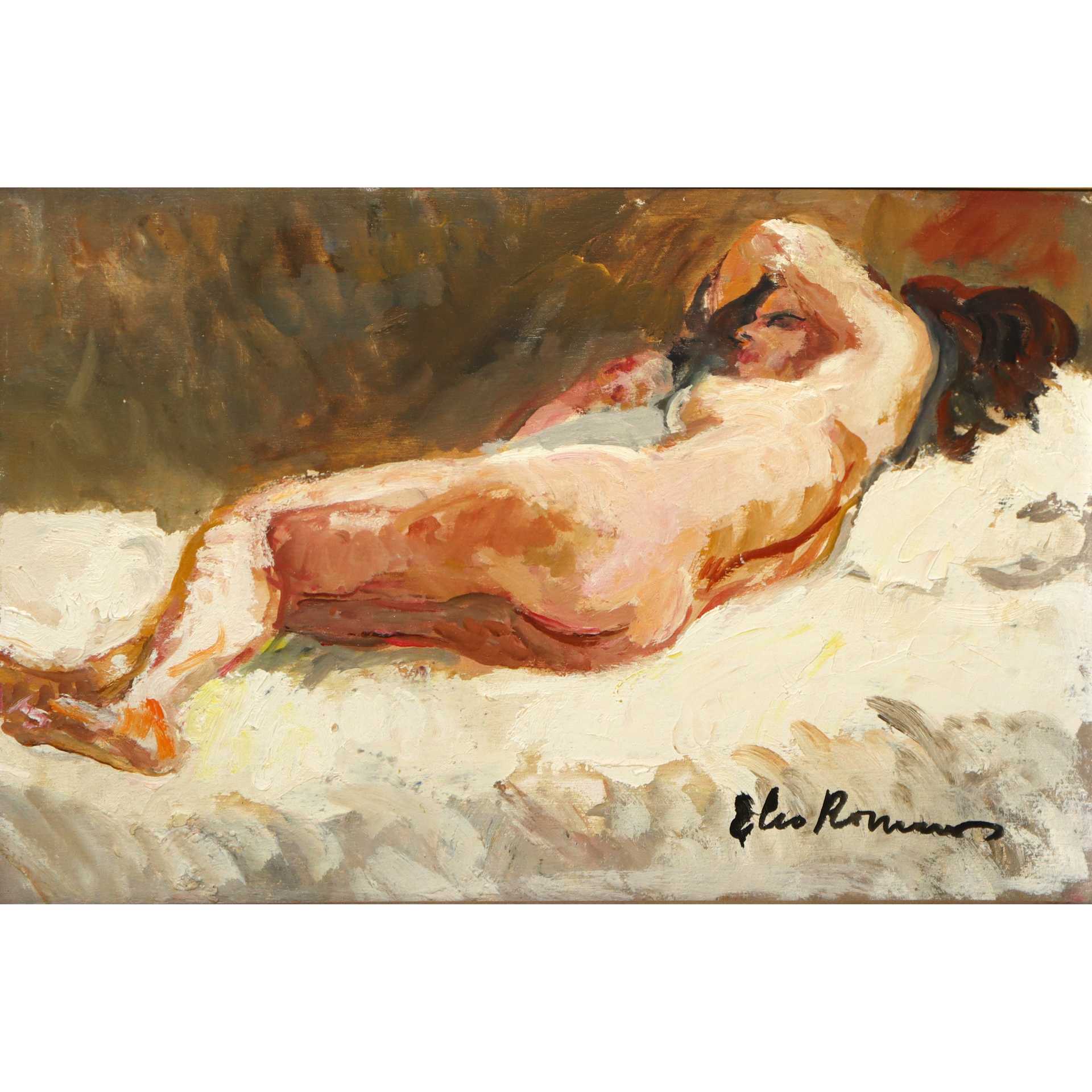 Elio Romano (Trapani 1909-Catania 1996) - Nudo di donna cm 25x35 in cornice cm 44x54 Olio su tavola Firmato in basso a destra