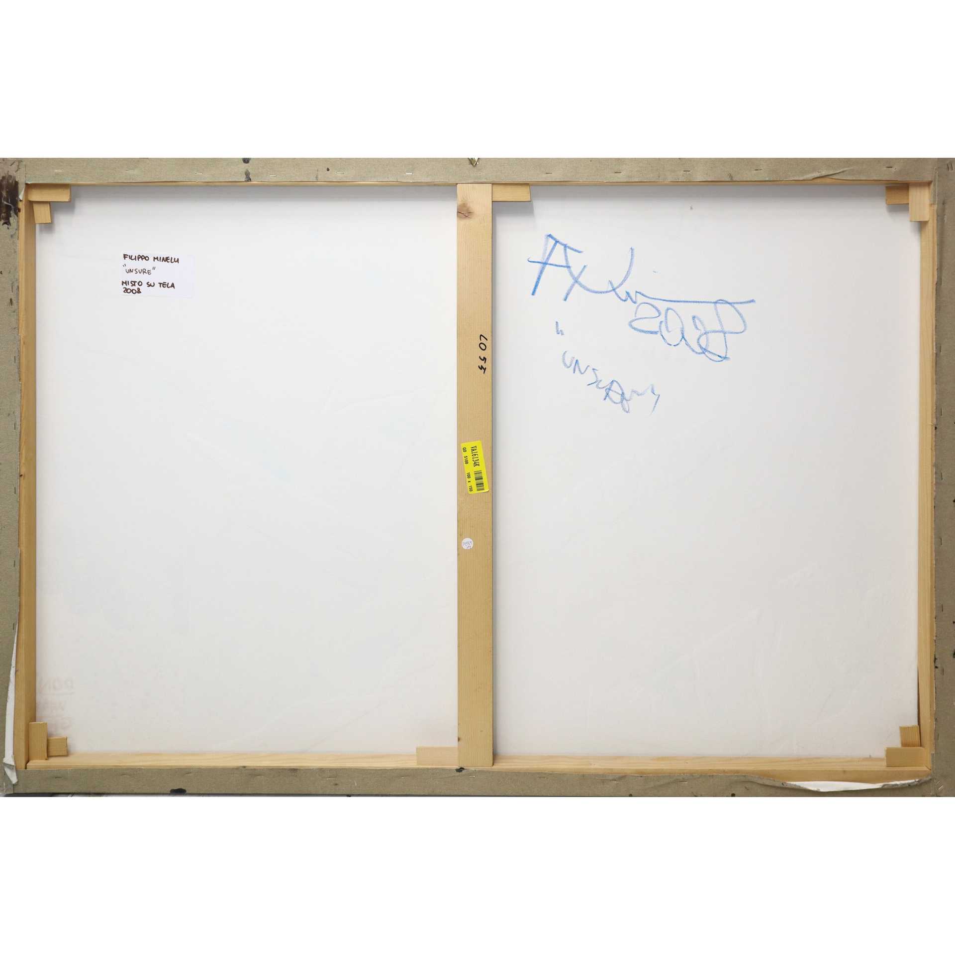 Filippo Minelli (1983) - Unsure, 2008 cm 100 x 150 Tecnica mista (olio,acrilico,foglia oro, pastello e tempera) su tela Firmato e titolato sul retro. Autentica su foto dell'autore n° rif. LO 55
