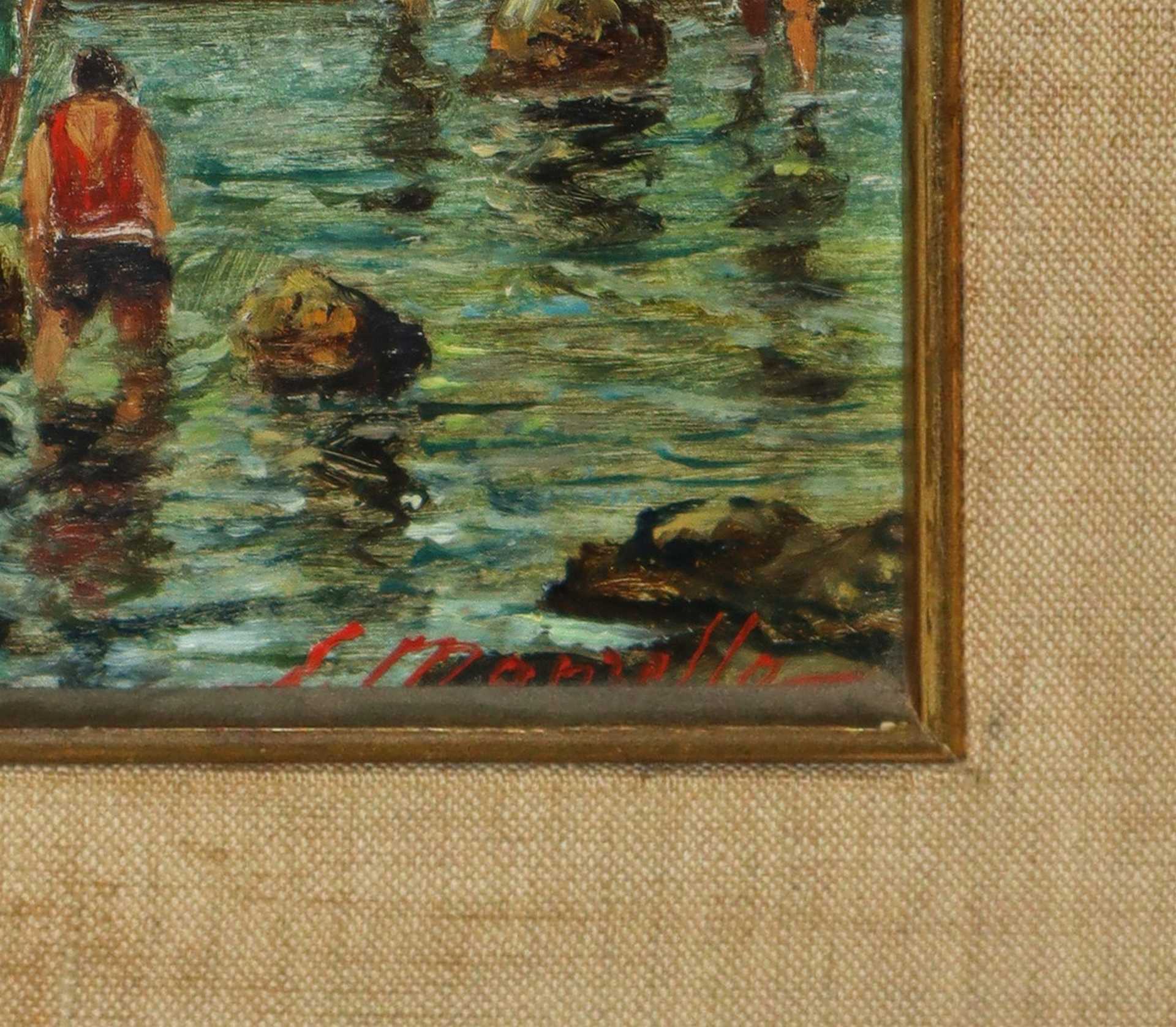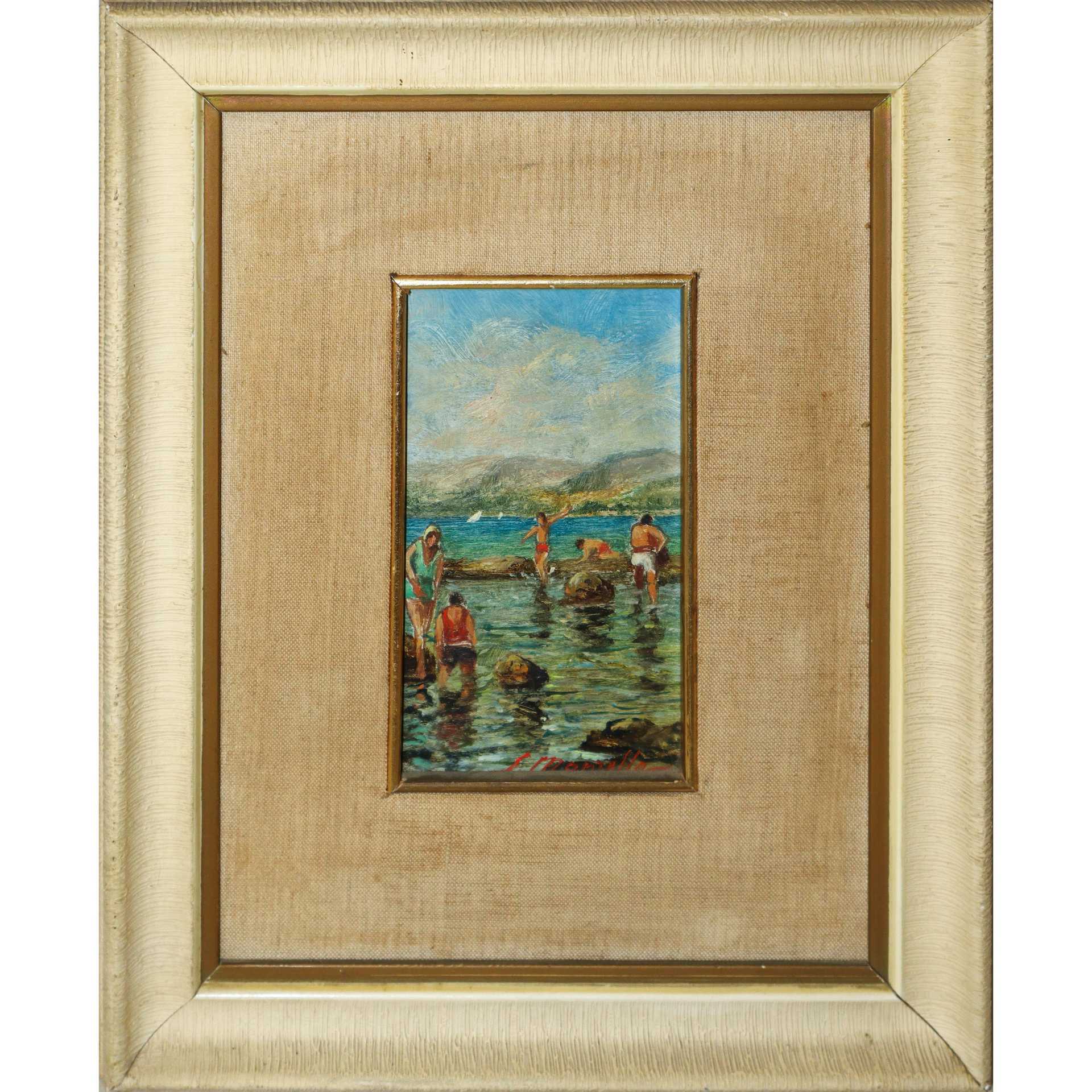 Salvatore Manzella (Palermo XX SECOLO) - Bagnanti H CM 28,5x22,5 Olio su tavoletta