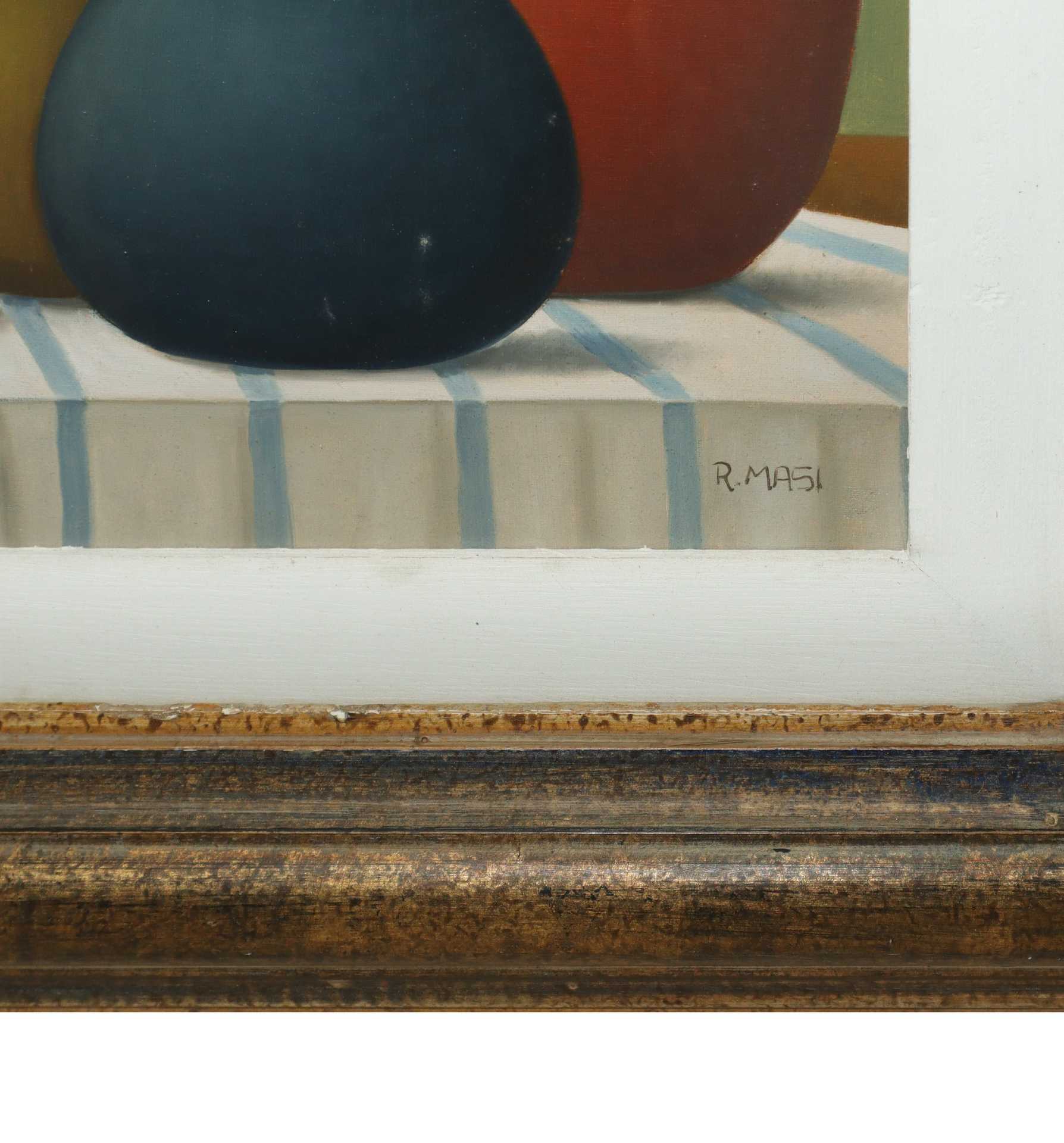 Roberto Masi (Firenze 1940-Firenze 2011) - Vaso con fiori cm 40x30 in cornice cm 64x54 Olio su tela Firmato in basso a destra e sul retro .