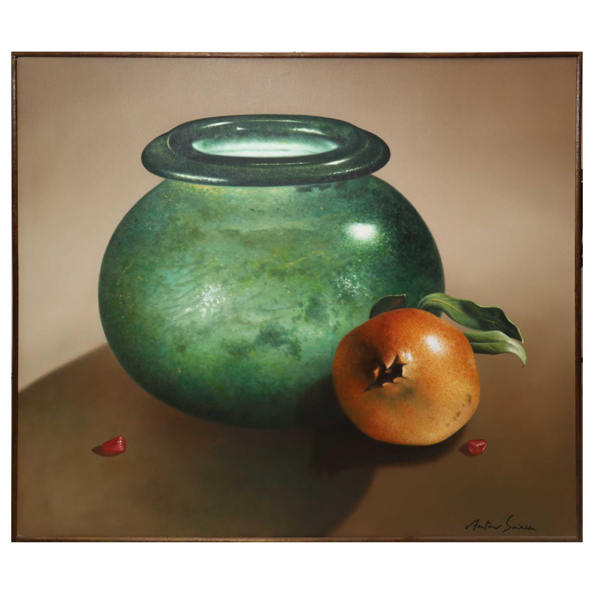 Antonio Sciacca (Catania 1957) - Natura morta con vaso verde e melograno