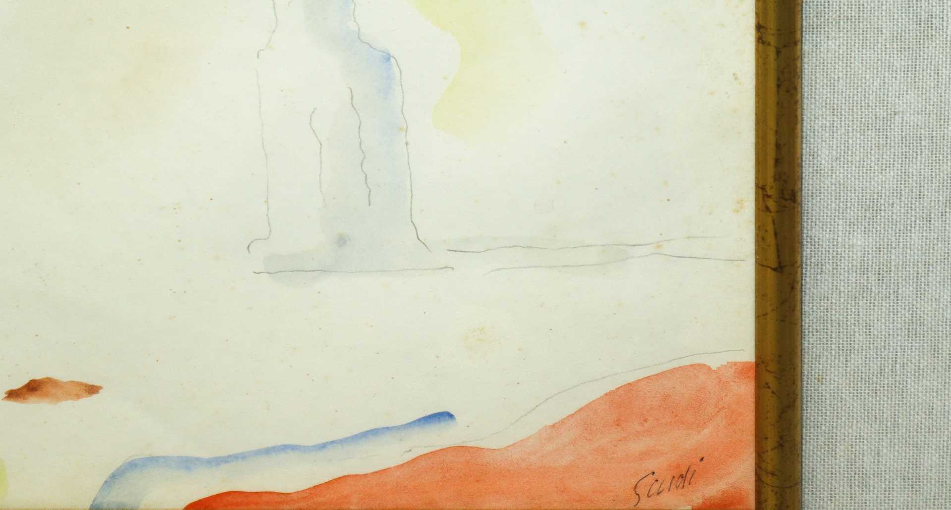 Virgilio Guidi (Roma 1891-Venezia 1984) - Bacino di S. Marco, 1970s H cm 30x40 - in cornice H cm 56x68 Acquerello Firmato in basso a destra. Autentica su foto di Gianni De Marco, gallerista.