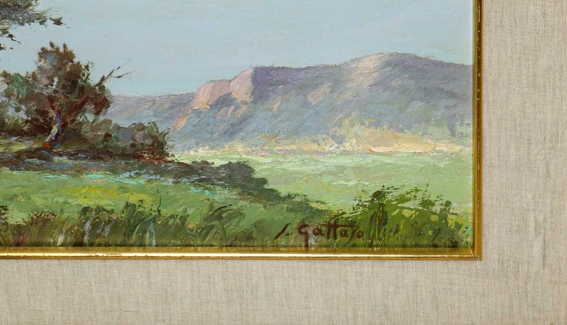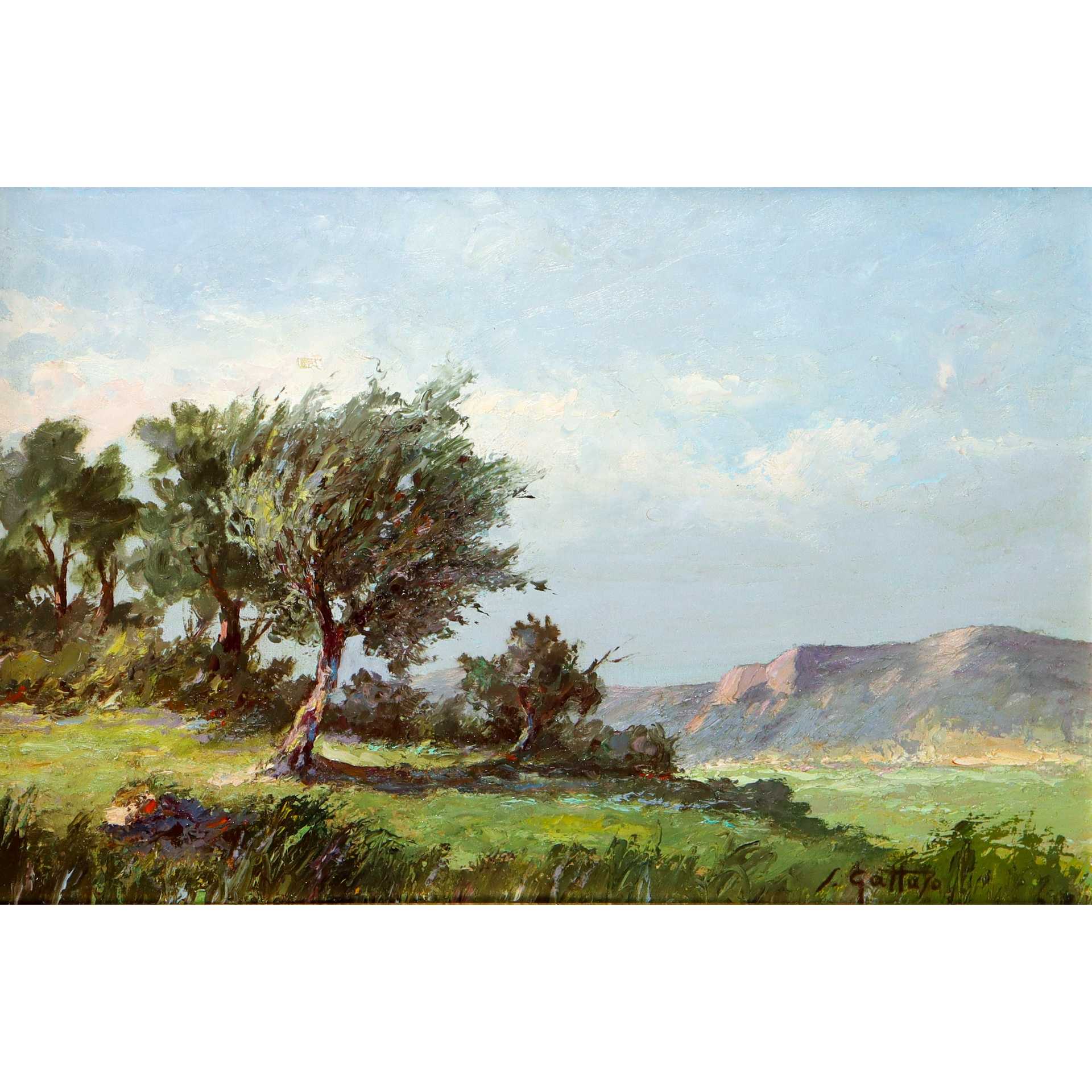 Paesaggio con alberi h cm 40X55 in cornice h cm 59X75 Olio su tavola Firmato in basso a destra S.Gattuso.